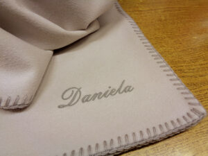 E’ possibile inoltre personalizzare plaid e coperte con cifre o nomi ricamati in corsivo Inglese: