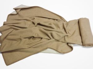 Il plaid sarà rifinito con punto cavallo in lana merino extrafine in tono su tono o con filato a contrasto a vostra scelta