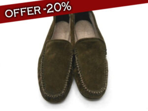 Mocassini per casa, in camoscio foderati internamente in puro cashmere, per uomo/donna/bambino.