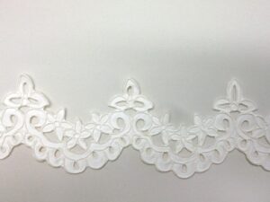 And then French Laces, rebrode’, Valencienne, Chantilly, embroidered tulles, hand embroidered laces with pearls and much more, all with matching hems.