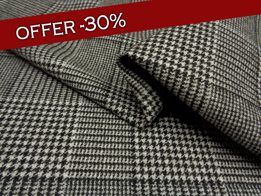 PREGIATO TESSUTO IN PURA LANA DI PRODUZIONE BIELLESE,CON DISEGNO PRINCIPE DI GALLES SUI TONI DEL NERO E GRIGIO CHIARO. COMPATTO, CORPOSO, CALDO, RASATO ED OPACO. TESSUTO UNISEX. INDICATO PER: CAPPOTTI, GIACCONI, MONTGOMERY, GIACCHE PESANTI, PARKA, CABAN, GONNE, ECC..