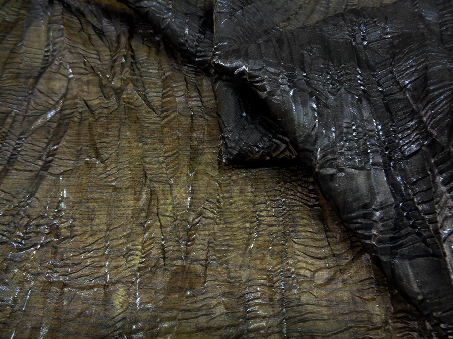 PARTICOLARE ORGANZA CANGIANTE CON STROPICCIATURA / CRESPATURA. LEGGERA, SEMIRIGIDA E VAPOROSA.