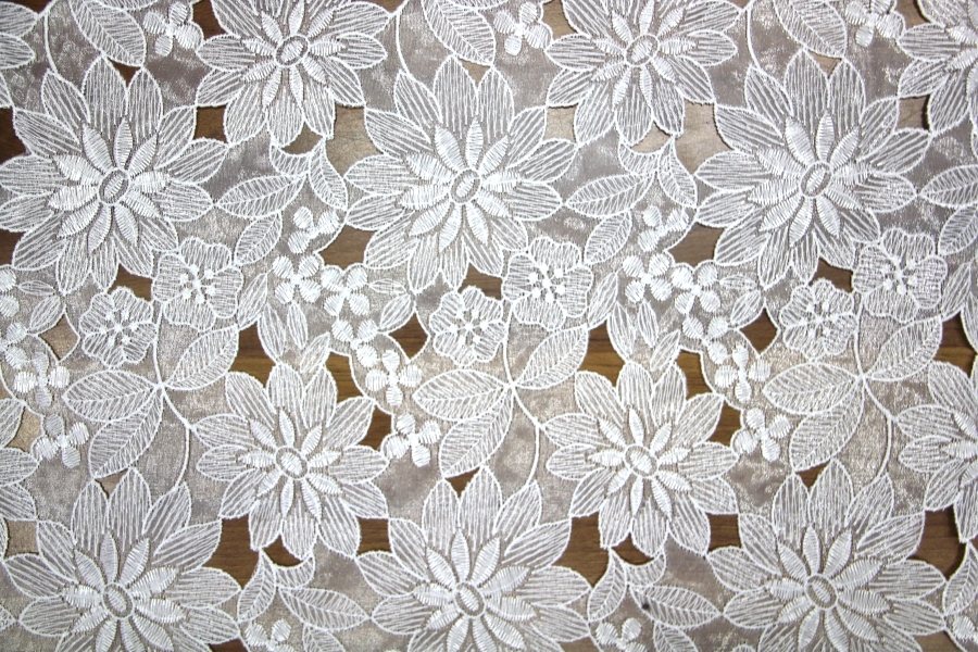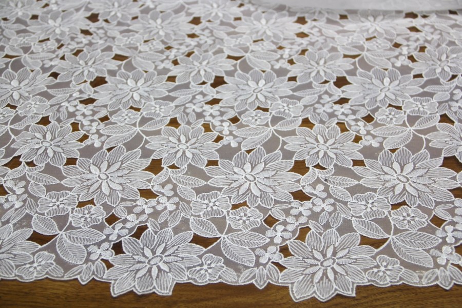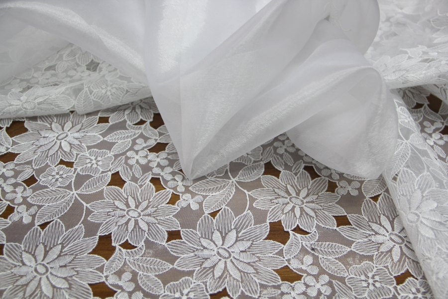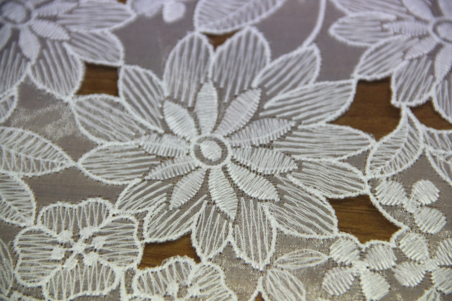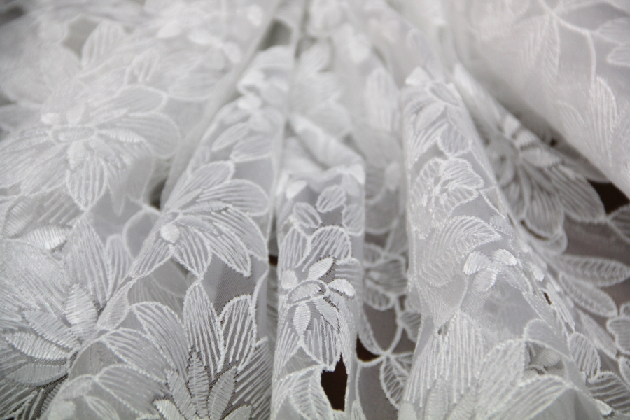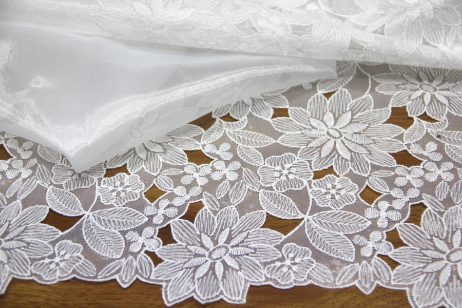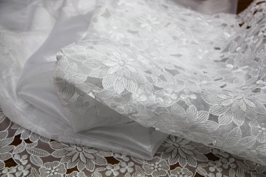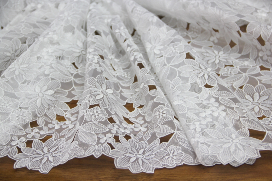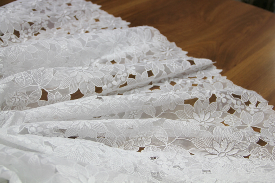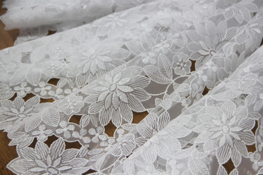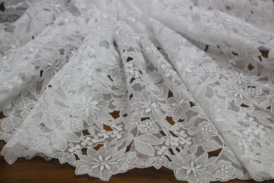 ORGANZA SATINATA LUCIDA RICAMATA AD INTAGLIO, RIFINITA CON UN SOLO FESTONE INDICATA PER : SPOSA, COMUNIONE, BATTESIMO, RITAGLIO, APPLICAZIONI, ECC.