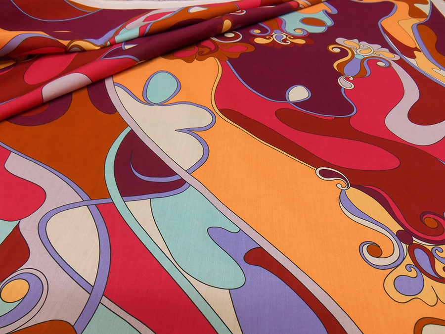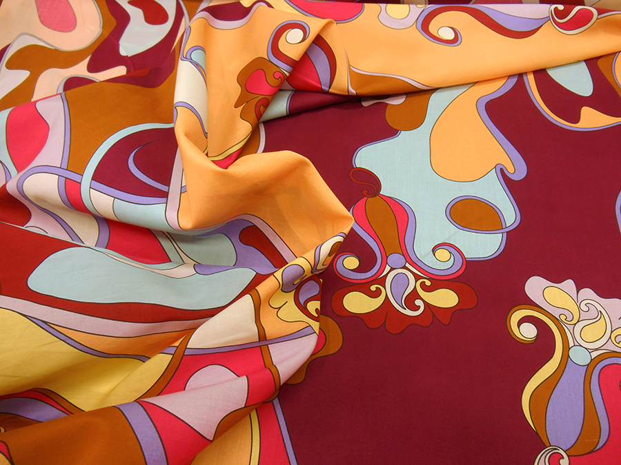 PREGIATA ED ESCLUSIVA BATISTA IN PURO COTONE, LEGGERA, MORBIDA E COPRENTE CON FANTASIA ASTRATTA SUI TONI DEL VINACCIO, FUCSIA, GIALLO AZZURRO, ECC.. INDICATO PER: CAFTANI, ABITI, GONNE, BLUSE, ECC..