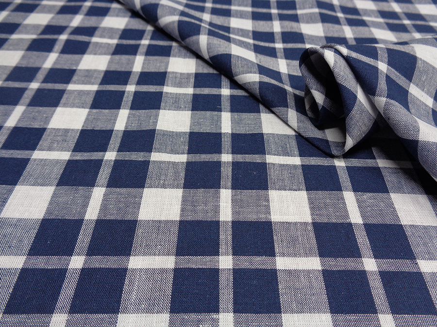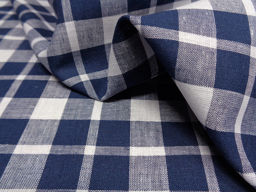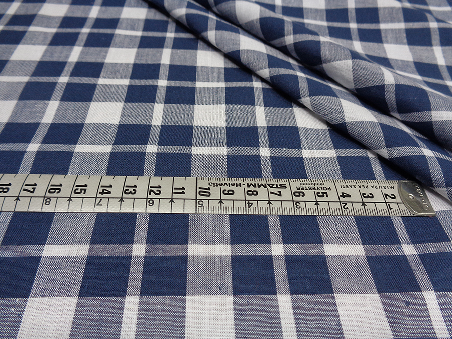 PREGIATA BATISTA IN LINO E COTONE, LEGGERA, MORBIDA, FRESCA ED OPACO CON PARTICOLARE QUADRETTO BIANCO E BLU. TESSUTO UNISEX INDICATO PER: CAMICIE, ABITI, CAMICIONI, GONNE, ECC..