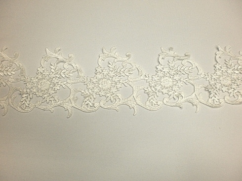 EDGE MACRAME' ART 421 WHITE SILK H: 10 CM € 20,00 AL MT. 80% VISCOSE, 20% POLYESTER. POSSIBILITY OF CUTTING. AVAILABILITY: MT 7.70 SUITABLE FOR: APPLICATIONS, VEILS, FINISHES, ETC