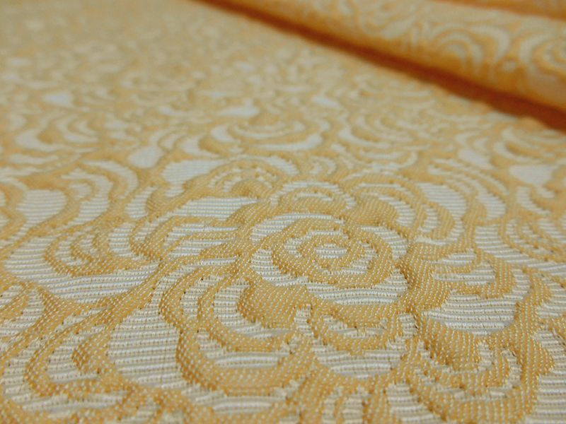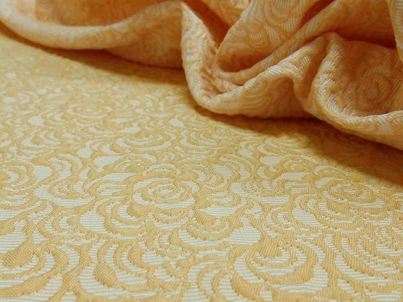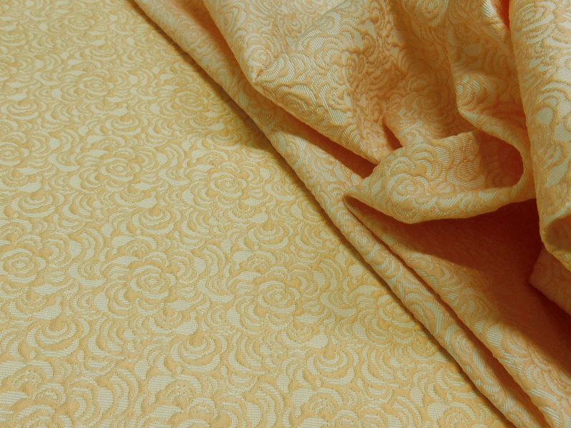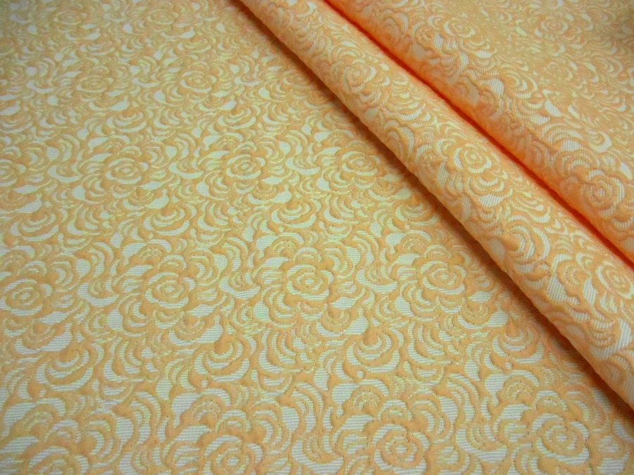 BROCCATO CONSISTENTE FONDO BIANCO CON LAVORAZIONE A FIORI IN RILIEVO SALMONE. INDICATO PER: GONNE, CORPETTI, BOUSTIER, GIACCHE, ABITI, ECC..