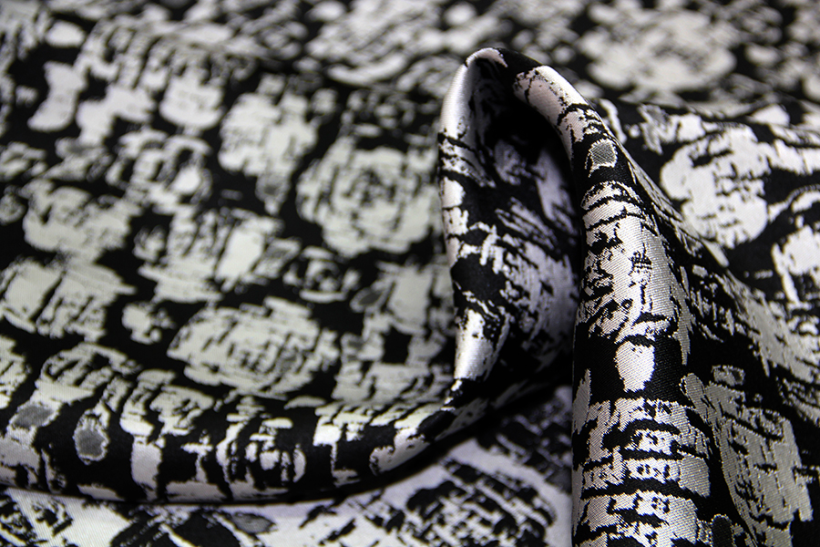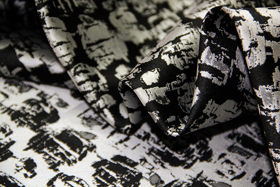 BROCCATO CONSISTENTE DOUBLEFACE CON FANTASIA EFFETTO FIORI STILIZZATI SUI TONI DEL NERO GRIGIO. INDICATO PER: GONNE, CORPETTI, BOUSTIER, GIACCHE, ABITI, ECC..