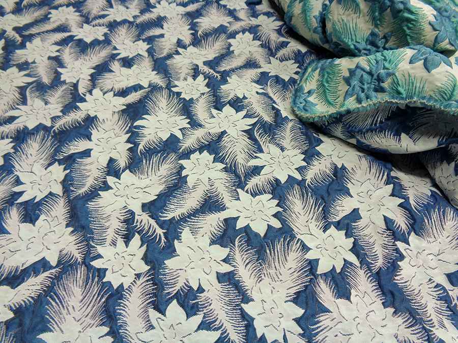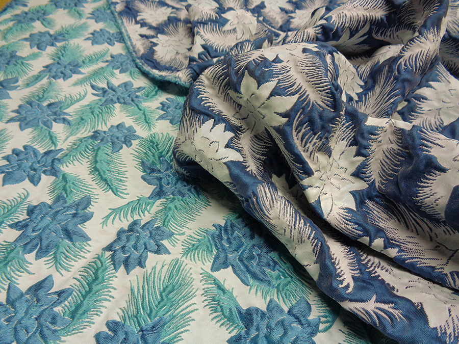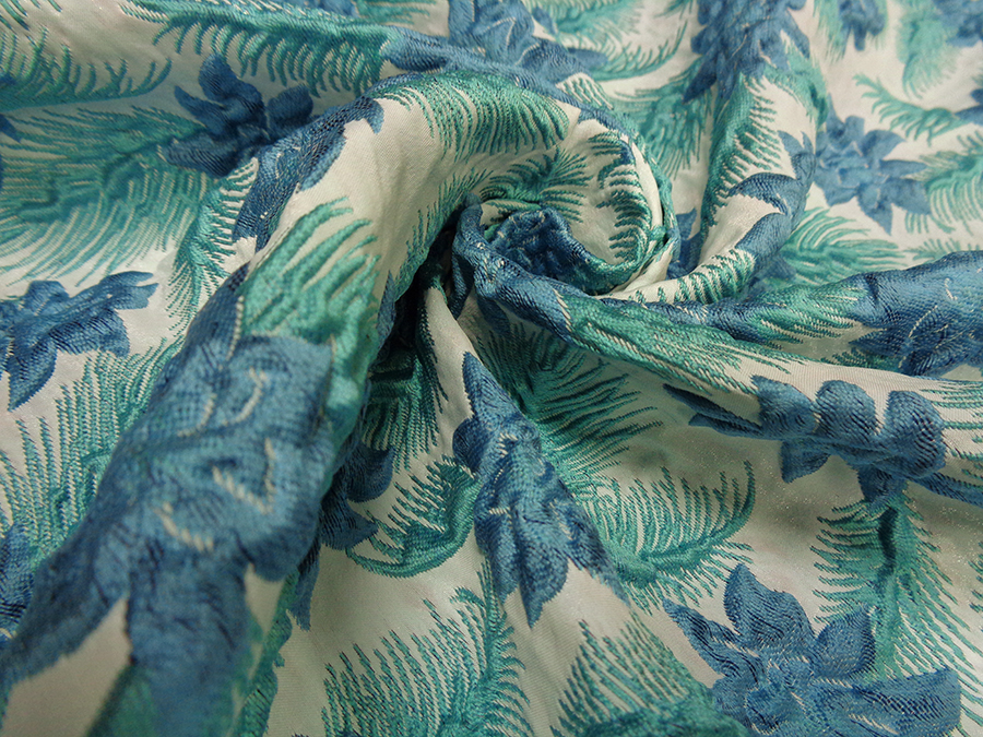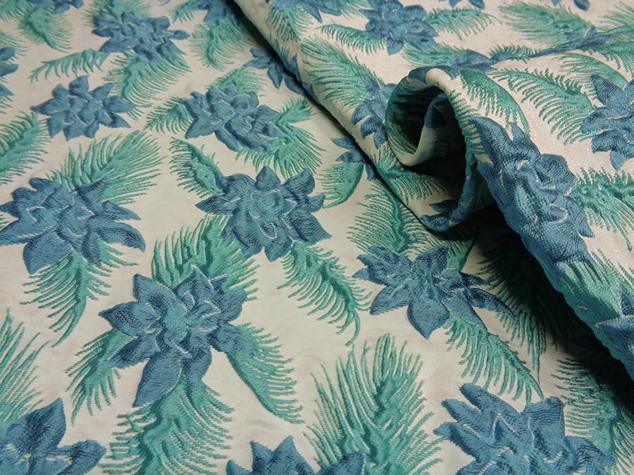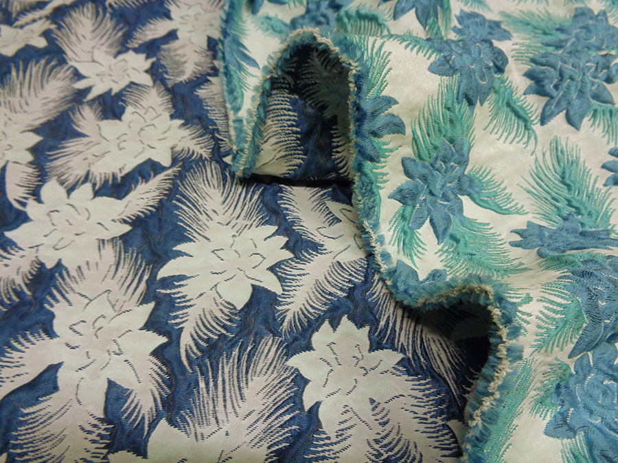 PREGIATO ED ESCLUSIVO BROCCATO DOUBLEFACE. LEGGERO, SOFFICE, VAPOROSO E COPRENTE. UN LATO FONDO GRIGIO GHIACCIO (QUASI BIANCO) CON IMPERCETTIBILI BAGLIORI ARGENTO DATI DAL FILATO METALLICO IN TRAMA, CON FANTASIA FLOREALE IN RILIEVO LEGGERMENTE GOFFRATA SUI TONI DEL TURCHESE E PETROLIO. DALL’ALTRO LATO FONDO AVIO CON FANTASIA FLOREALE SUI TONI DEL GHIACCIO CON IMPERCETTIBILI BAGLIORI ARGENTO DATI DAL FILATO METALLICO IN TRAMA. . POSSIBILITA’ DI UTILIZZO DA AMBO I LATI. TESSUTO UNISEX INDICATO PER: GIACCHE, GONNE, ABITI, COMPLETI, PANTALONI, ECC..