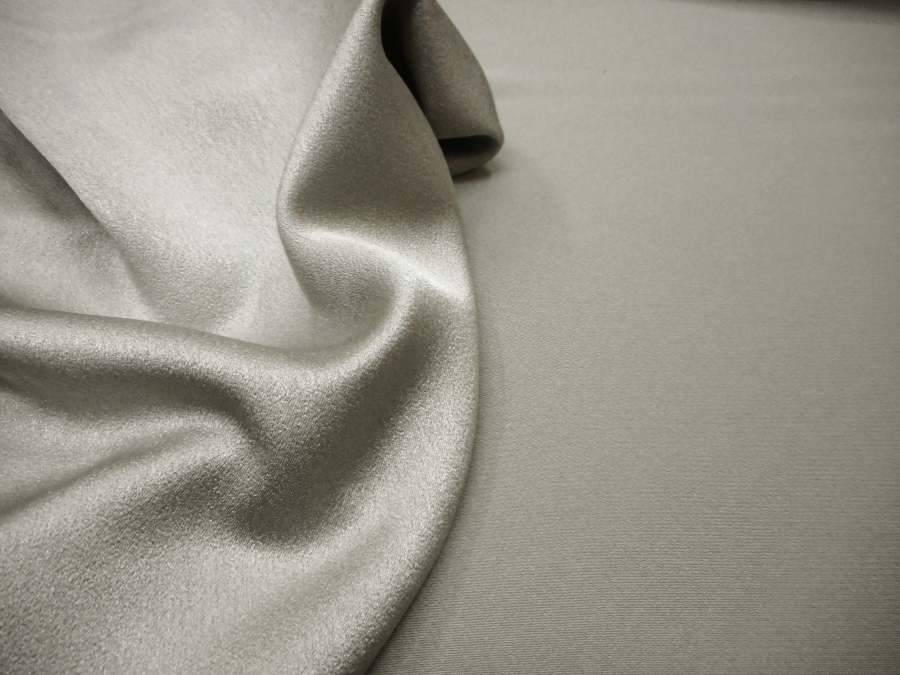 CADY WITH CREPE WORKING, MATT FROM ONE SIDE, GLOSSY FROM THE OTHER. MEDIUM WEIGHT, SOFT AND CREASE RESISTANT. POSSIBILITY OF WORKING BOTH SIDES. SUITABLE FOR: CLOTHES, TUNICS, TROUSERS, SKIRTS, TAILLEUR, JACKETS, ETC