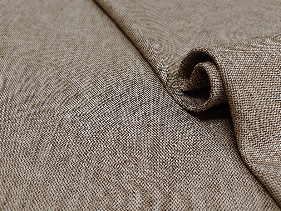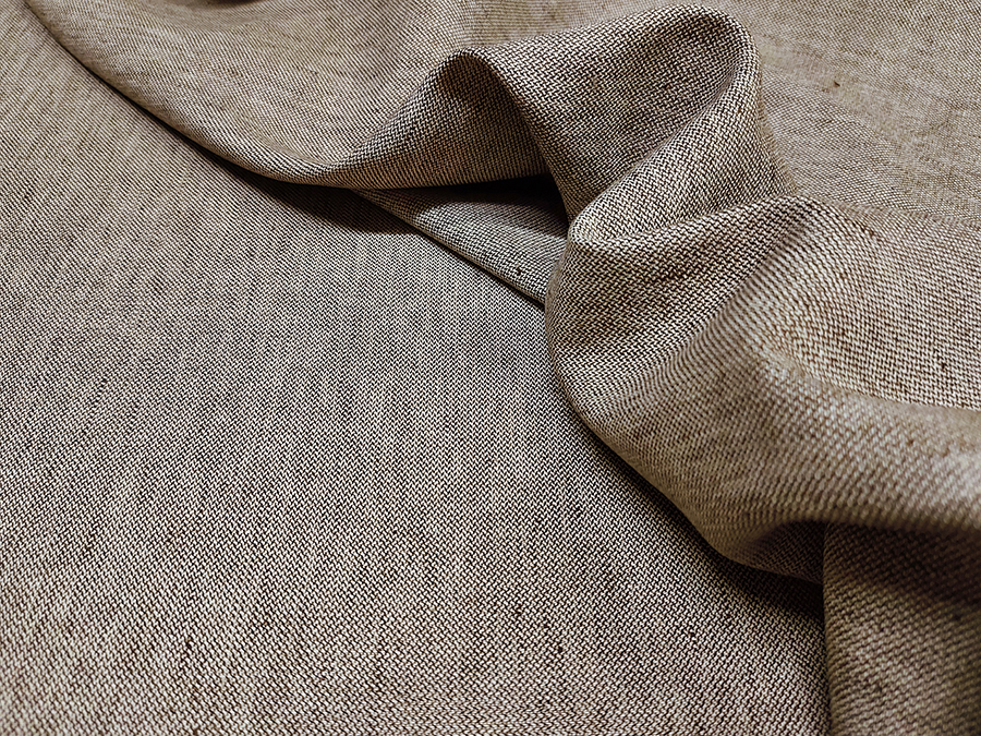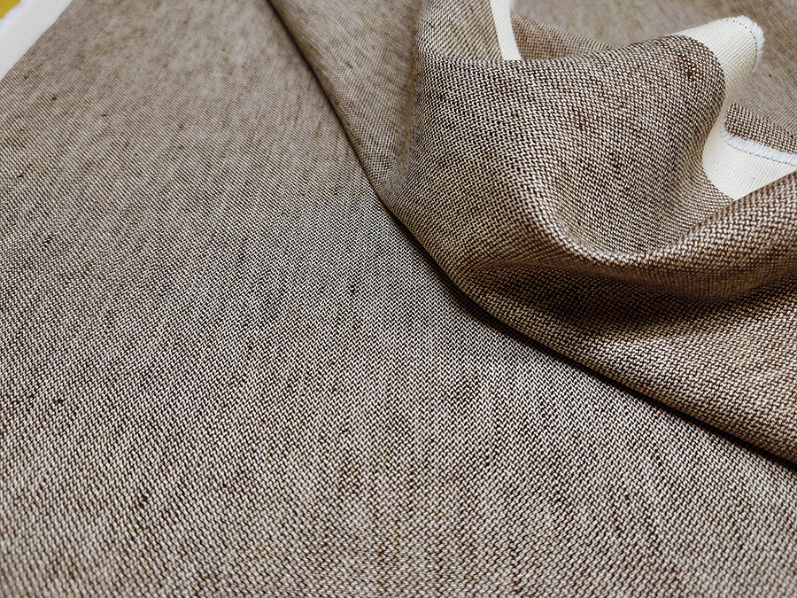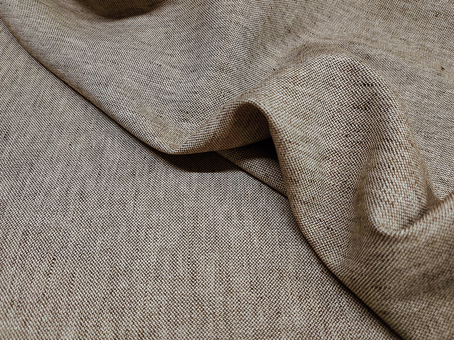 BRIONI STOCK (NO FIRMATO, NO CORREDATO DA ETICHETTE) PREGIATO TESSUTO IN LINO E COTONE TRAMATO, CORPOSO, COMPATTO ED OPACO. FONDO CORDA MELANGE MARRONE. TESSUTO UNISEX. INDICATO PER: ABITI, GIACCHE, PANTALONI, GONNE, GILET, BERMUDA, ECC..