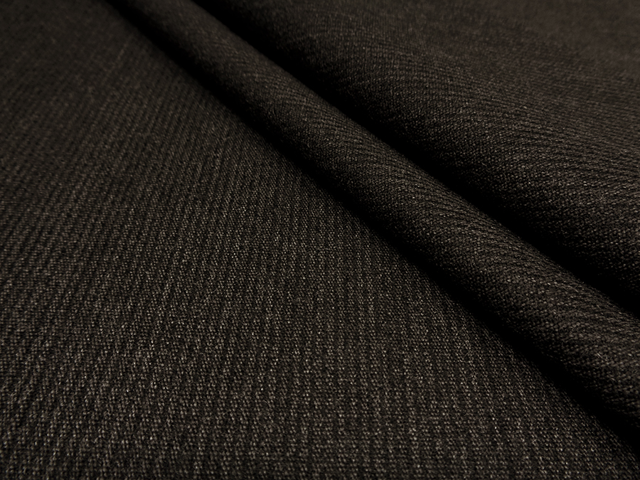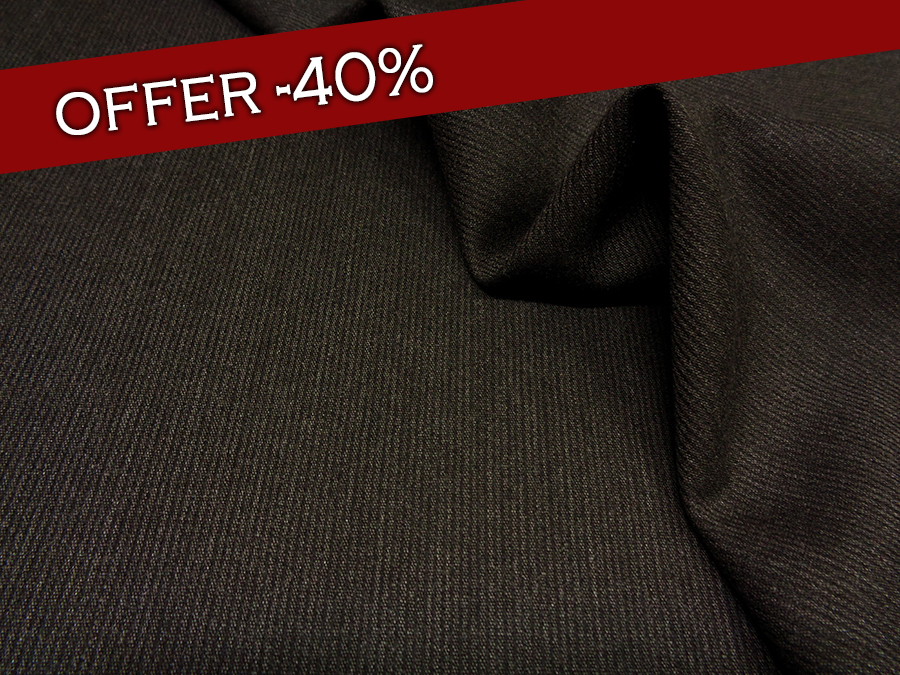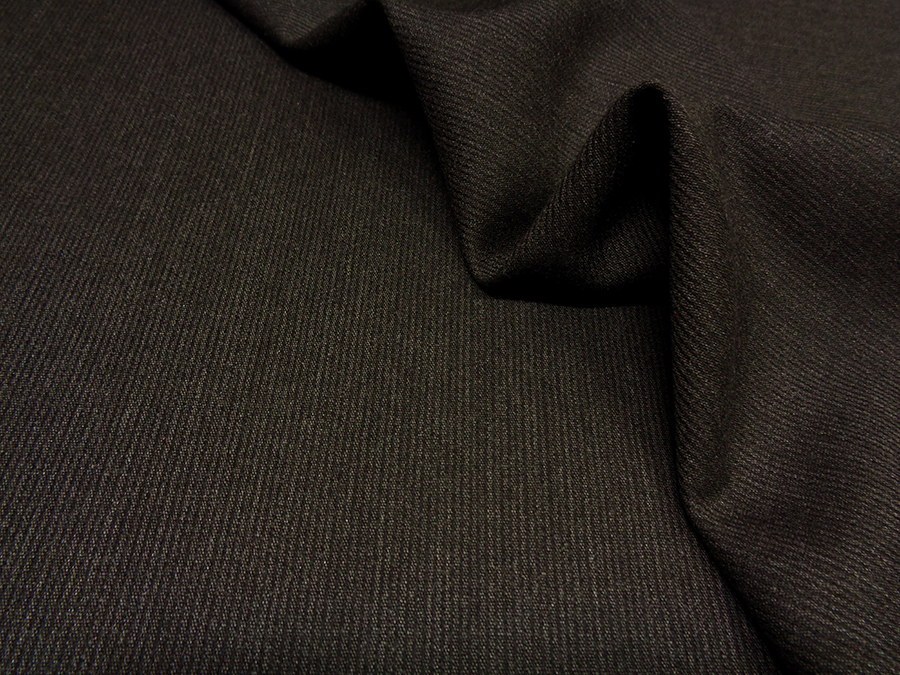 PREGIATO TESSUTO IN CANETE’ DI PURA LANA PETTINATA, CON CARATTERISTICA TRAMA A PICCOLA COSTINA COLORE MORO MELANGE NERO. CORPOSO ED INGUALCIBILE TESSUTO UNISEX INDICATO PER: GIACCA, PANTALONE, GILET.