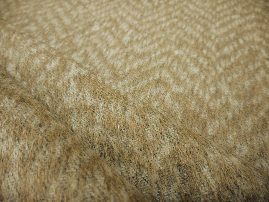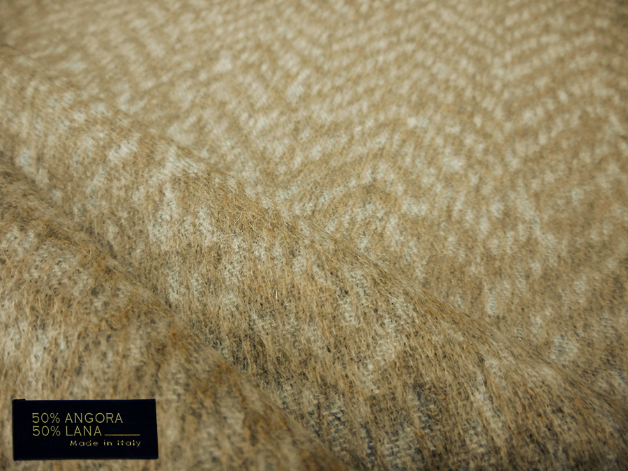 PRADA STOCK (NO FIRMATO, NO CORREDATO DA ETICHETTE) ESCLUSIVO, MORBIDO, CALDO E SETOSO TESSUTO PER CAPPOTTO CON EFFETTO SPINA DI PESCE SFUMATA, FONDO GRIGIO/AZZURRO POLVERE E SPIGA SABBIA. TESSUTO IDEALE PER: CAPPOTTI, GIACCONI, MANTELLE, STOLE, GONNE, GILET, ECC.