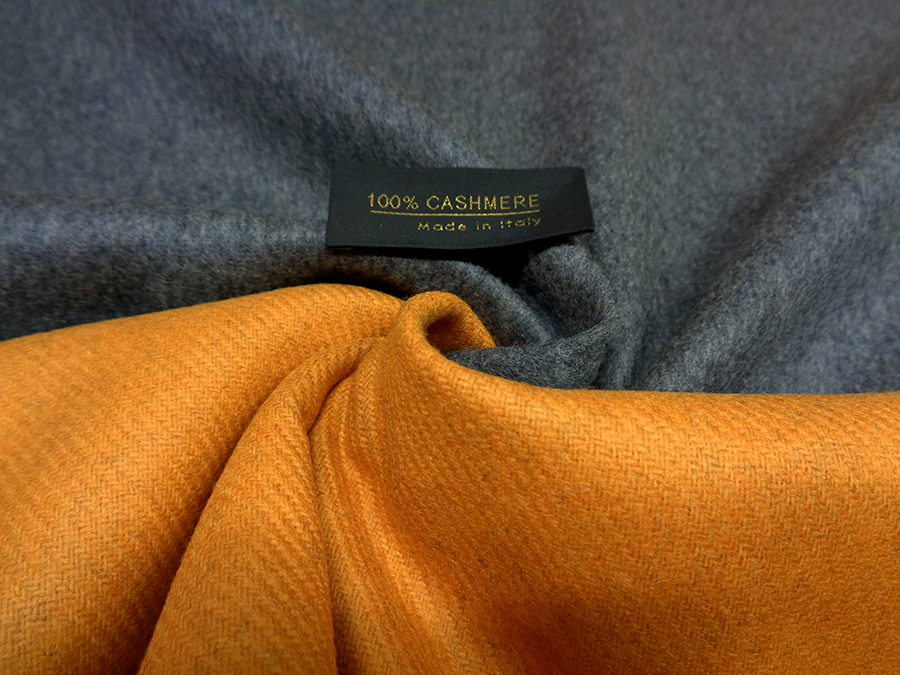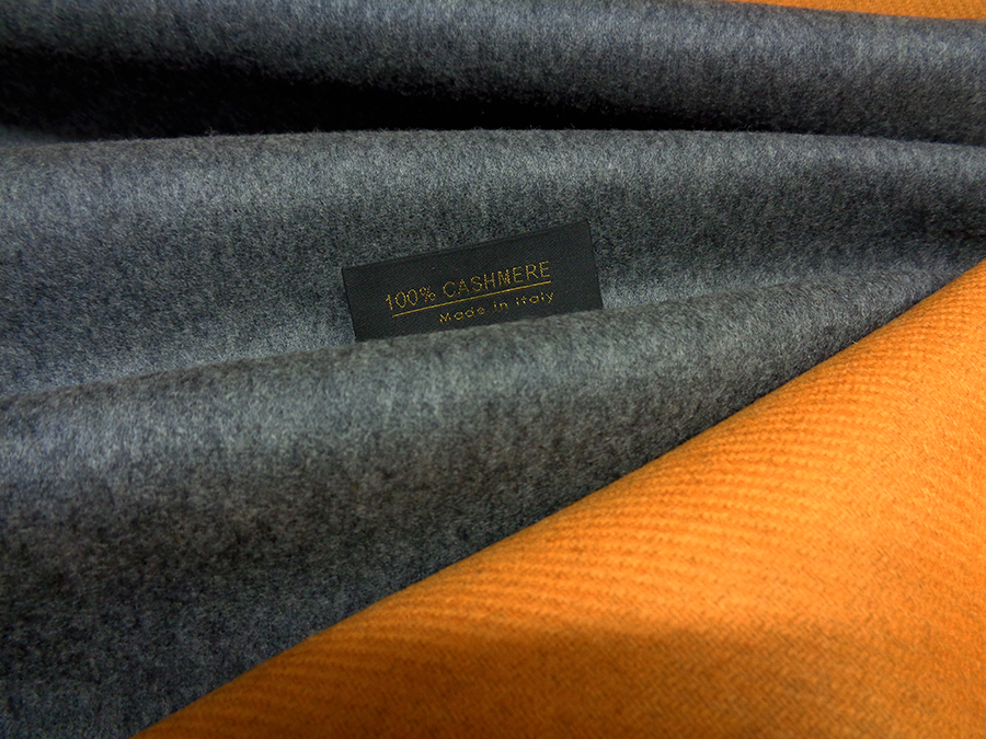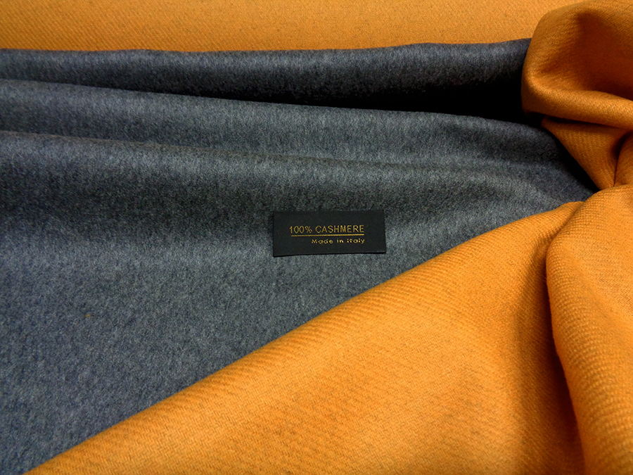 100% CASHMERE (LATO GRIGIO) / 100% LANA (LATO OCRA) – MADE IN ITALY