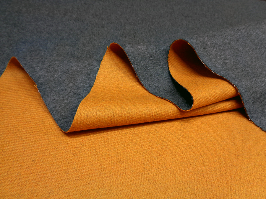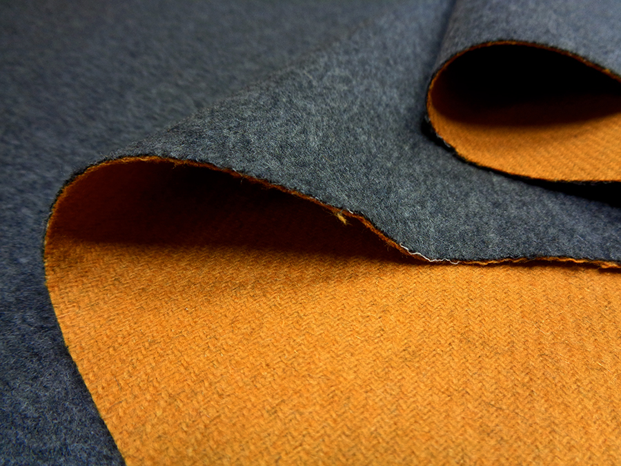LANIFICIO CERRUTI  STOCK (NO FIRMATO, NO CORREDATO DA ETICHETTE) PREGIATO ED ESCLUSIVO TESSUTO DOUBLEFACE APRIBILE  IN PURO CASHMERE DAL LATO GRIGIO MEDIO MELANGE, E IN PURA LANA DAL LATO OCRA  MELANGE CON TRAMA SHETLAND DIAGONALE.  CORPOSO, COMPATTO, SETOSO E CALDO. POSSIBILITA’ DI UTILIZZO DA AMBO I LATI.