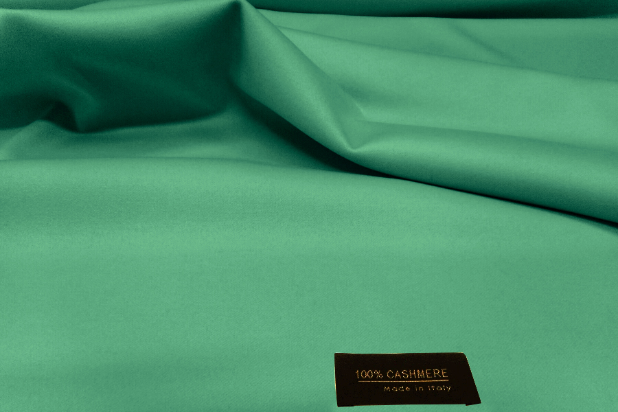 LANIFICIO COLOMBO STOCK (NO FIRMATO, NO CORREDATO DA ETICHETTE) PREZIOSO E PREGIATO PURO CASHMERE DOUBLE FACE APRIBILE, PESO MEDIO. MORBIDO, SETOSO E COMPATTO, LEGGERMENTE LUMINOSO, COLORE TIFFANY DA AMBO I LATI.