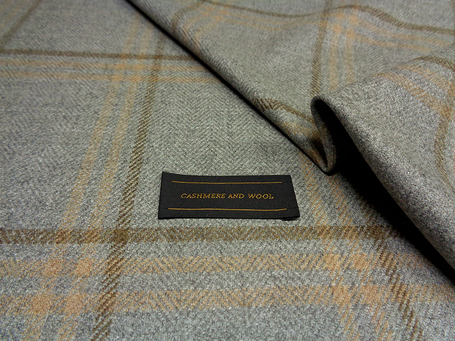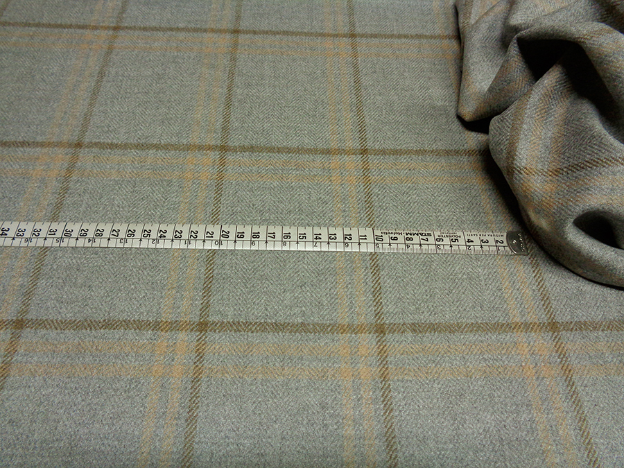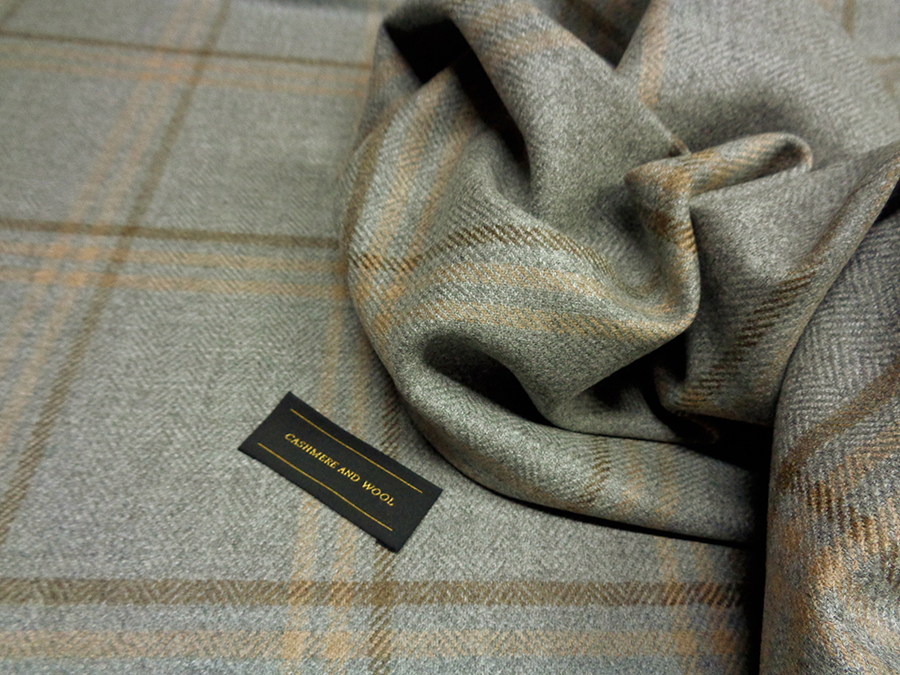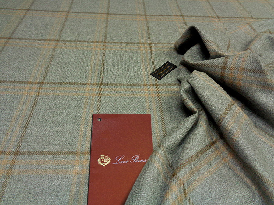 LORO PIANA STOCK (NO SIGNED, NO LABEL). PRECIOUS FABRIC IN CASHMERE AND CARDED WOOL, MEDIUM WEIGHT, SOFT, WARM AND OPAQUE, LIGHT GRAY BACKGROUND WITH HERRINGBONE IN DYE-ON-DYE TEXTURE AND LARGE WINDOW IN TAUPE AND BEIGE TONES. UNISEX FABRIC. SUITABLE FOR JACKETS, OVERCOATS, COATS, ETC ..