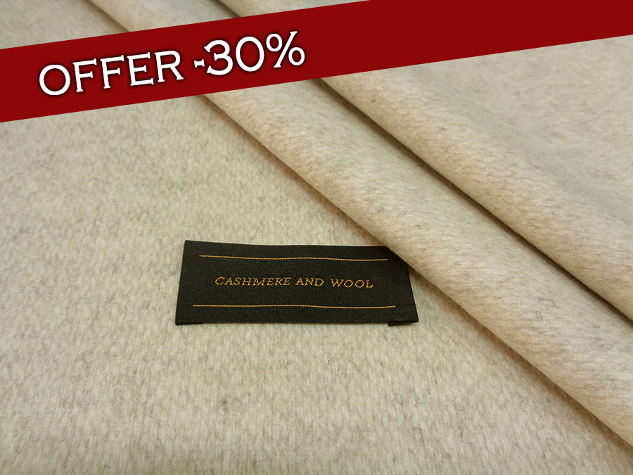 PREGIATO TESSUTO IN LANA E CASHMERE. COMPATTO, CORPOSO, LISCIO E SETOSO. COLORE BEIGE NATURALE MELANGE. TESSUTO UNISEX INDICATO PER: CAPPOTTI, GIACCONI, SOPRABITI, GIACCHE PESANTI, MANTELLE, COPERTE, CAPPELLI, BORSE, ECC..