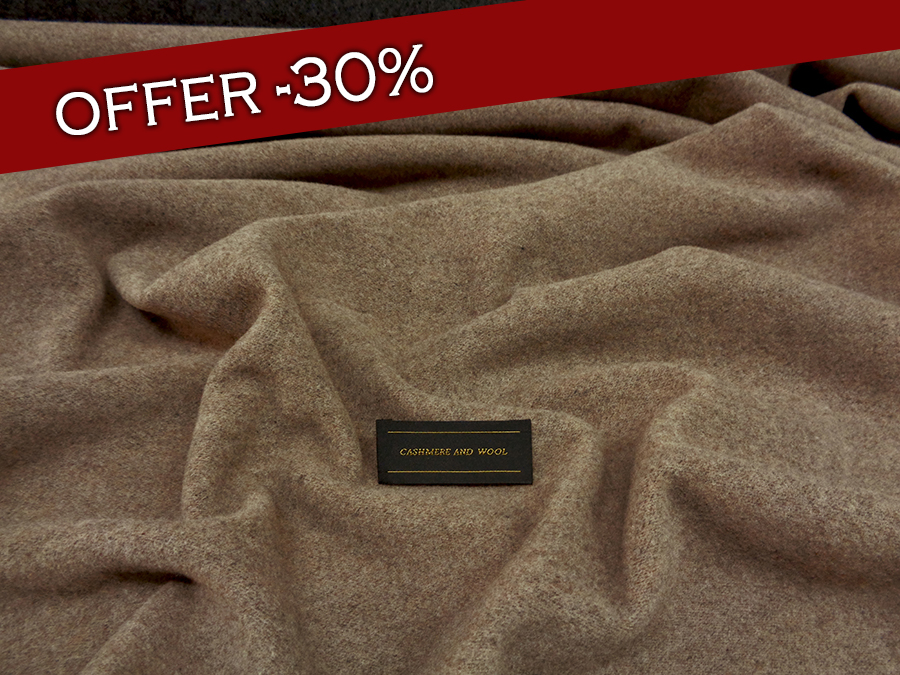 PREGIATO TESSUTO IN CASHMERE , MORBIDISSIMO, CALDO, SOFFICE ED OPACO. IN COLORE BROWN NATURALE MELANGE (NOCCIOLA) CON ROVESCIO SCURO TENDENTE AL GRIGIO. TESSUTO UNISEX INDICATO PER: CAPPOTTI, MANTELLE, GIACCONI, COPERTE, CAPPELLI, STOLE, ECC.