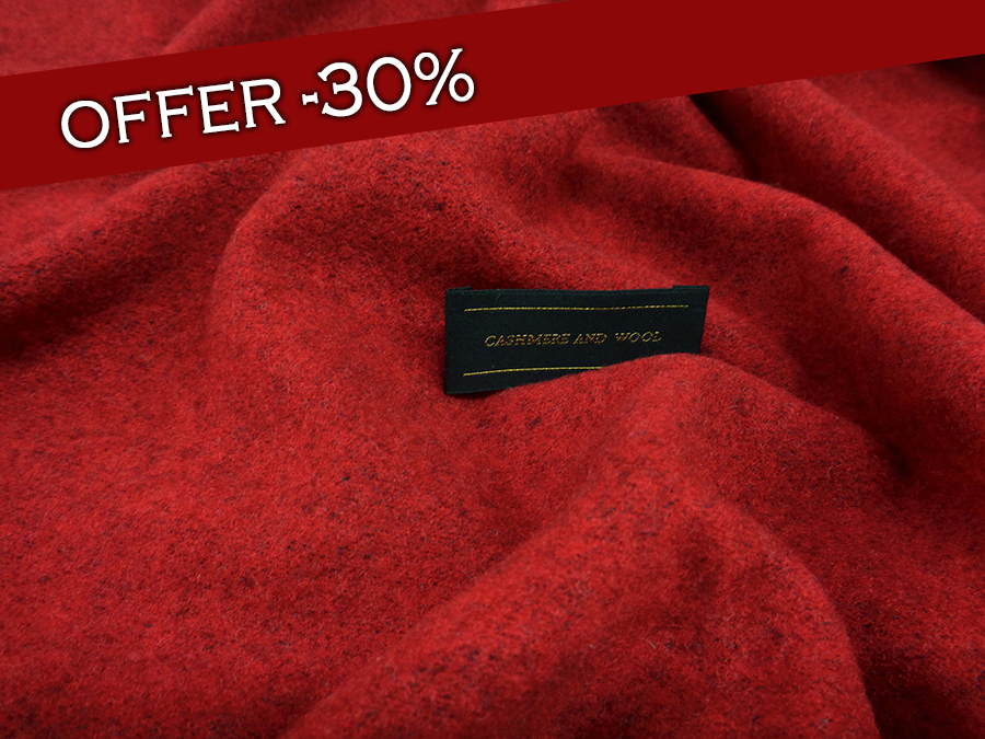 PREGIATO TESSUTO IN CASHMERE, MORBIDISSIMO, CALDO, SOFFICE ED OPACO. COLOR ROSSO RUBINO MELANGE CON ROVESCIO PIU’ SCURO. TESSUTO UNISEX INDICATO PER: CAPPOTTI, MANTELLE, GIACCONI, COPERTE, CAPPELLI, STOLE, ECC..