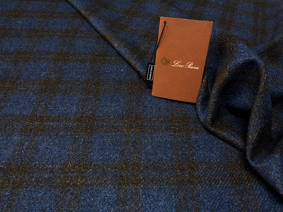 LORO PIANA STOCK (NO FIRMATO, NO CORREDATA DA ETICHETTE) PREGIATISSIMO TESSUTO IN PURO CASHMERE, PESO MEDIO, MORBIDO , SETOSO E RASATO .FONDO BLU BRILLANTE MELANGE CON TRAMA DIAGONALE E PRINCIPE DI GALLES MARRONE . TESSUTO UNISEX. INDICATO PER: GIACCHE, ABITI, SOPRABITI CAPPOTTI, PANTALONI ECC..