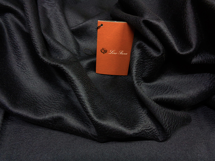 LORO PIANA STOCK (NO FIRMATO, NO CORREDATO DA ETICHETTE) PREGIATISSIMO E PREZIOSO TESSUTO DOUBLEFACE APRIBILE IN PURO CASHMERE CON LAVORAZIONE ZIBELLINO.COMPATTO, CORPOSO, CALDISSIMO, SETOSO, MORBIDO E LUMINOSO. COLORE BLU ZIBELLINATO DA AMBO I LATI.