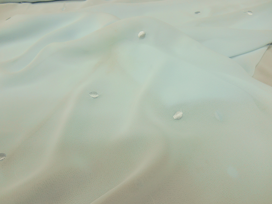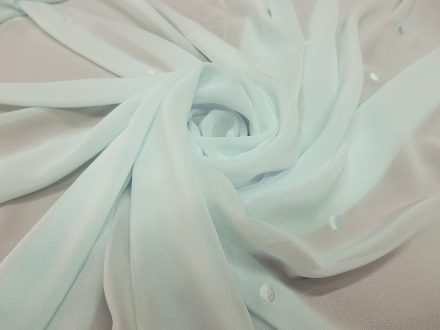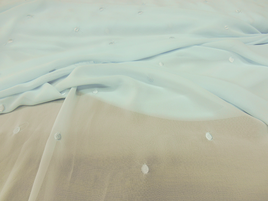 VERY VEILED AND SOFT CHIFFON WITH SMALL POIS EMBROIDERED WITH SILK YARN, PLUMETIS EFFECT COLOR ON TINT.