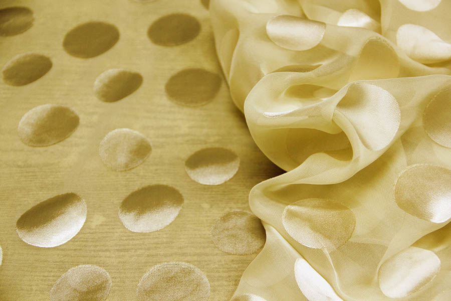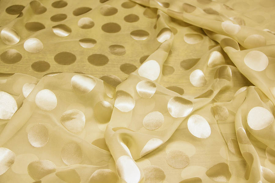 MADE IN ITALY. VELATA GEORGETTE BEIGE CON LAVORAZIONE A POIS (Ø 4 cm)