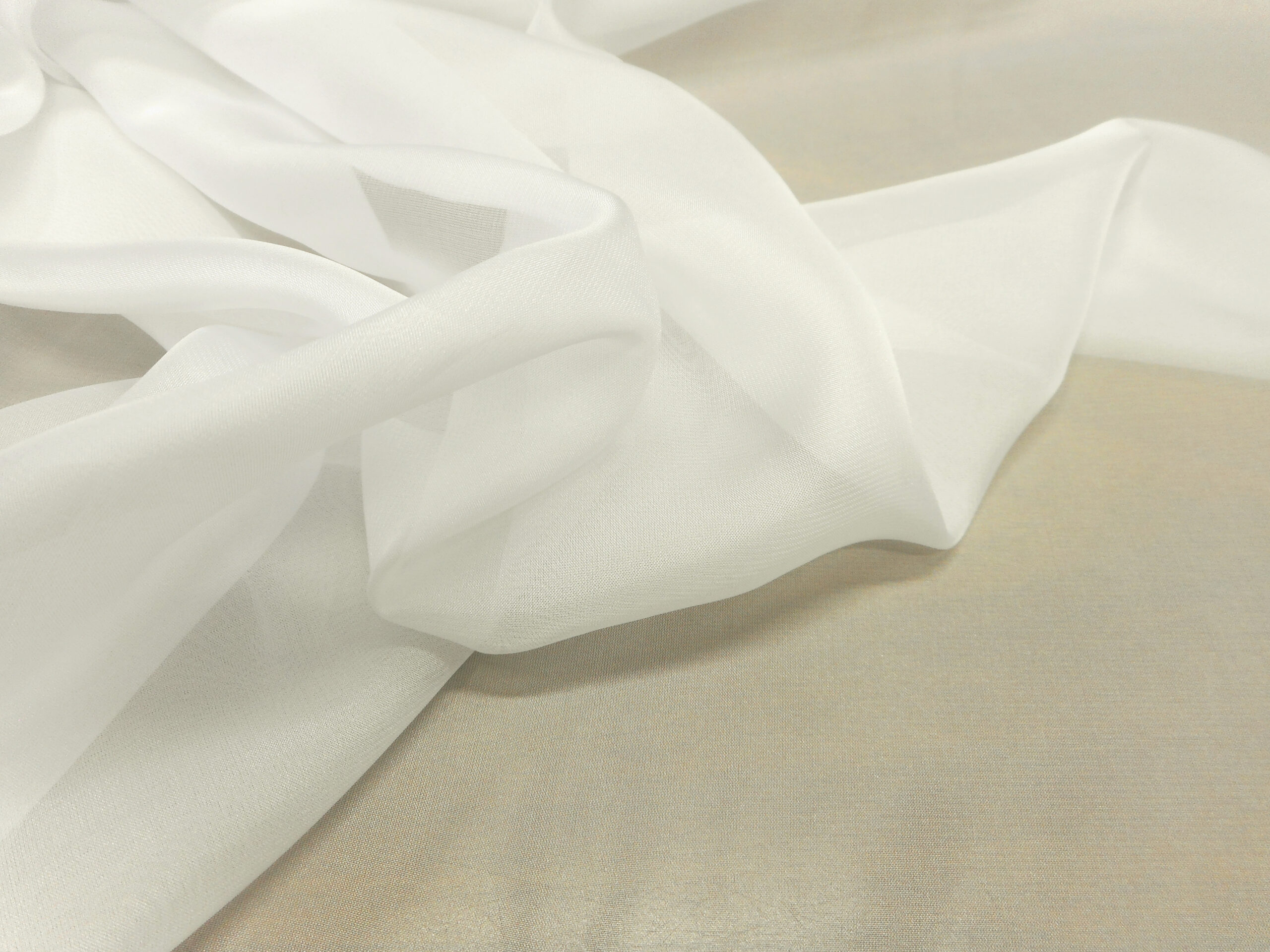 VERY VEILED, LIGHT AND IMPALPABLE CHIFFON IN NATURAL WHITE (VERY LIGHT IVORY) PURE SILK. SUITABLE FOR: DRESSES, STOLE, SKIRTS, BLUSE, ETC..