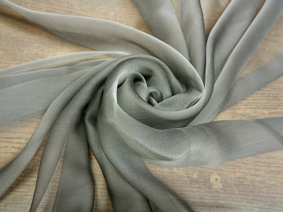 VELATISSIMO, LEGGERO ED IMPALPABILE CHIFFON IN SETA PURA. COLORE GRIGIO MEDIO CANGIANTE.
