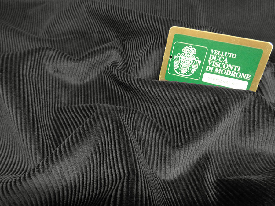 PREGIATO, MORBIDO, CALDO E LUMINOSO VELLUTO A COSTE, ALTA QUALITA’ DUCA VISCONTI DI MODRONE. INDICATO PER: PANTALONI ED ABBIGLIAMENTO UOMO DONNA. OGNI TAGLIO DI TESSUTO SARA’ CORREDATO DA ETICHETTE DI GARANZIA VISCONTI DI MODRONE.