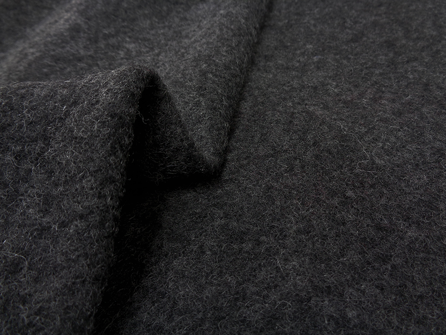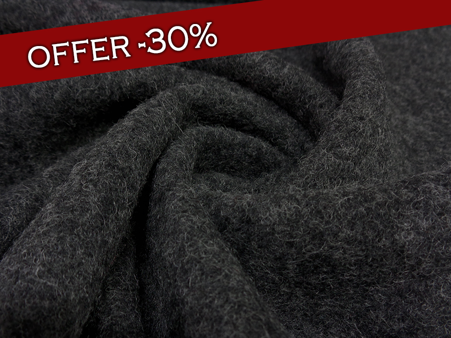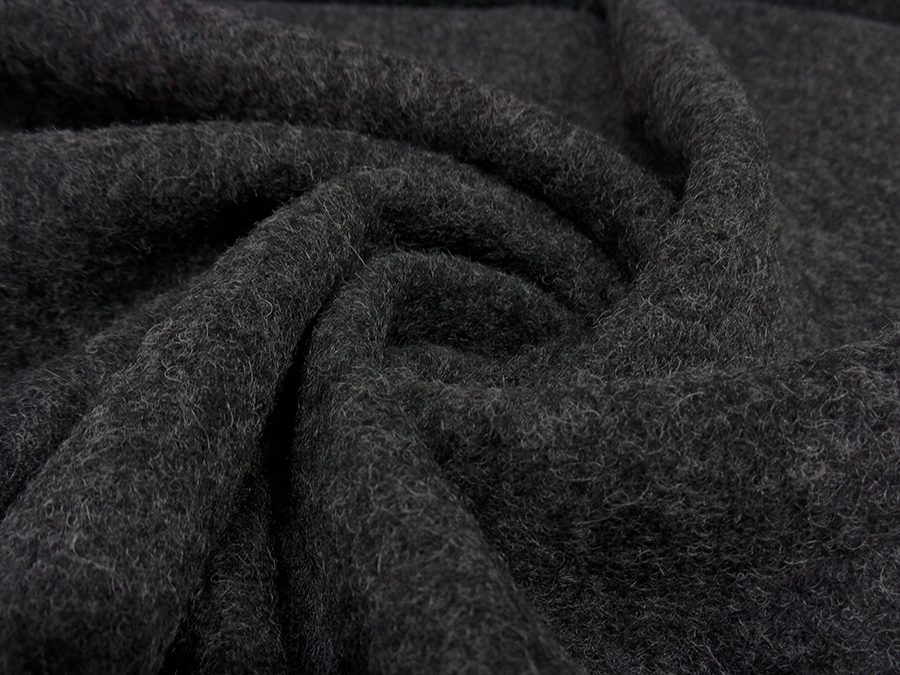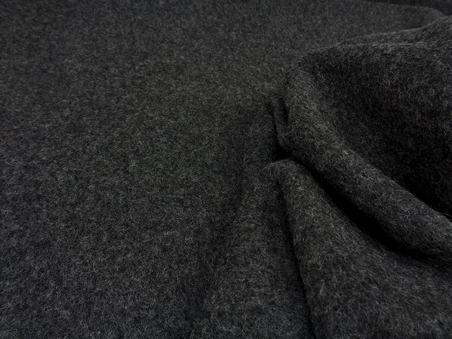 PREGIATO TESSUTO EFFETTO LANA COTTA IN LANA MOHAIR, MORBIDISSIMO, SOFFICE E CALDO. GRIGIO SCURO CON TRAMA MELANGE. INDICATO PER: CAPPOTTI, GIACCONI , MANTELLE, PLAID, CAPPELLI, STOLE, ECC..