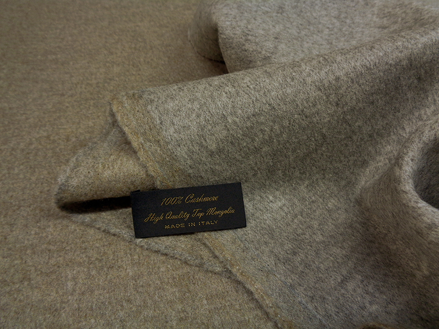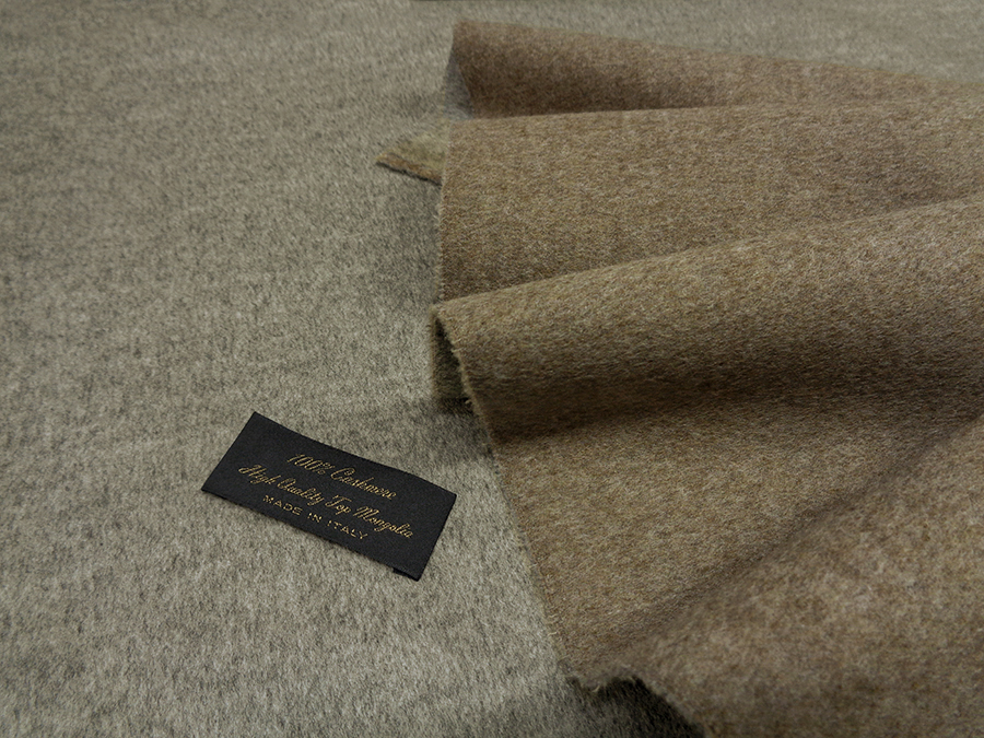 LORO PIANA STOCK (NO FIRMATO, NO CORREDATO DA ETICHETTE) PREGIATISSIMO TESSUTO IN PURO CASHMERE TOP MONGOLIA DOUBLEFACE APRIBILE, CORPOSO, MORBIDO, CALDO, SOFFICE, SETOSO CON FINITURA OPACA. DA UN LATO COLORE TORTORA MELANGE E DALL’ALTRO LATO CORDA MELANGE. POSSIBILITA’ DI UTILIZZO DA AMBO I LATI. L’ALTISSIMA QUALITA’ DEL FILATO IN PURO CASHMERE TOP MONGOLIA CONFERISCE UNA SENSAZIONE DI MORBIDEZZA E CALORE IMPAREGGIABILE. TESSUTO UNISEX AD ESAURIMENTO SCORTE. INDICATO PER: CAPPOTTI, GIACCONI, REVERSIBILI CON PELLICCIA, MANTELLE, COPERTE, ECC..