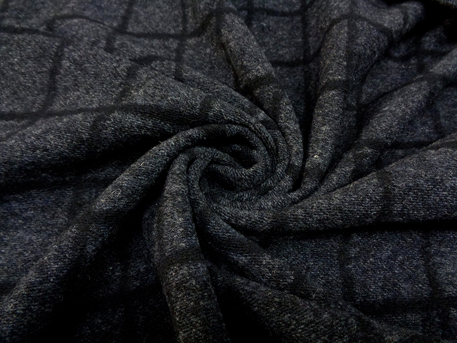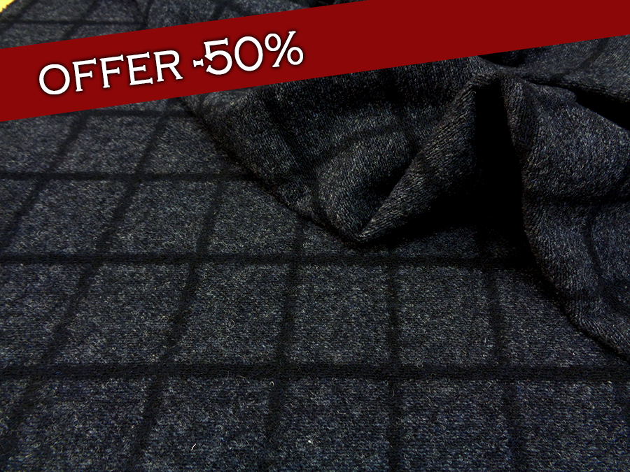 PARTICOLARE TESSUTO IN LANA TECNICA ELASTICIZZATA EFFETTO LANA COTTA. PESO MEDIO, COMPATTO, CALDO E CONFORTEVOLE. TESSUTO BLU MELANGE / GRIGIO CON FINESTRATO BLU SCURO. TESSUTO UNISEX INDICATO PER: GIACCHE, GIACCONI, SOPRABITI , GONNE, GIUBBOTTI, BOMBER, ECC..