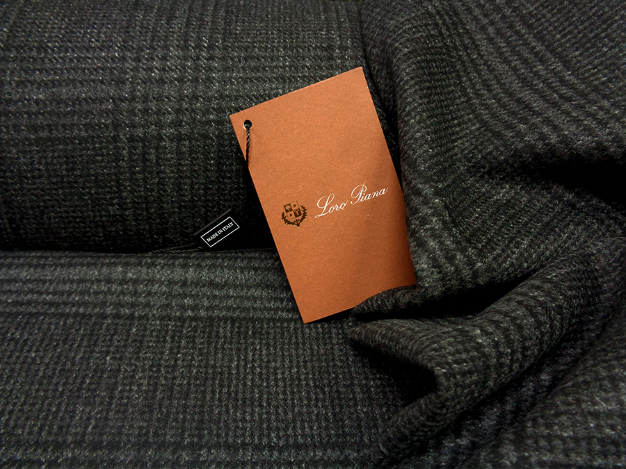 LORO PIANA STOCK (NO FIRMATO, NO CORREDATO DA ETICHETTA) PREGIATO TESSUTO IN PURO CASHMERE DI ALTA QUALITA’ TOP MONGOLIA. PESO CAPPOTTO, CORPOSO, MORBIDO, SETOSO E CALDO. FANTASIA PRINCIPE DI GALLES SUI TONI DEL GRIGIO SCURO E NERO. TESSUTO UNISEX INDICATO PER: CAPPOTTI, GIACCONI, GIACCHE PESANTI, MANTELLE, STOLE, ACCOPPIATI CON CAPI IN PELLE, GONNE, VESTAGLIE, COPERTE, PLAIDS, CAPPELLI, ECC..