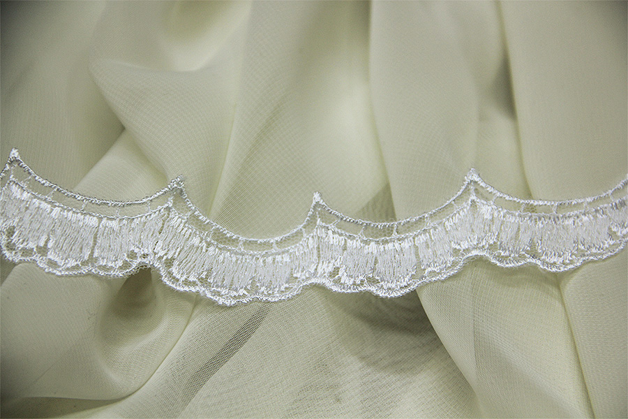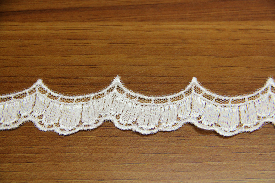 PICCOLO E MORBIDO FESTONE LUMINOSO SU BASE TULLE UTILIZZABILE PER RIFINITURA ABITI E VELI.