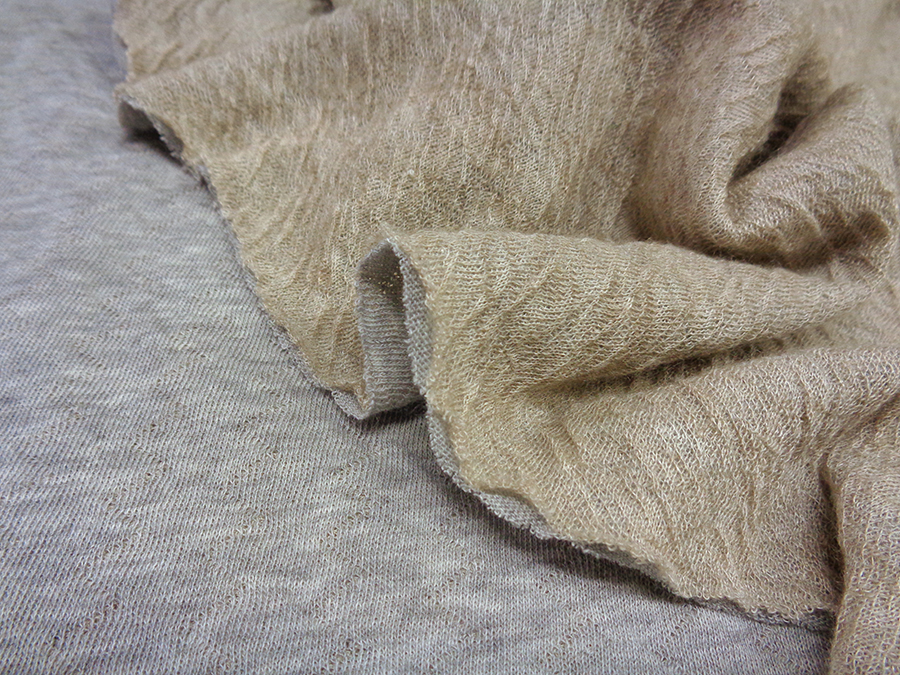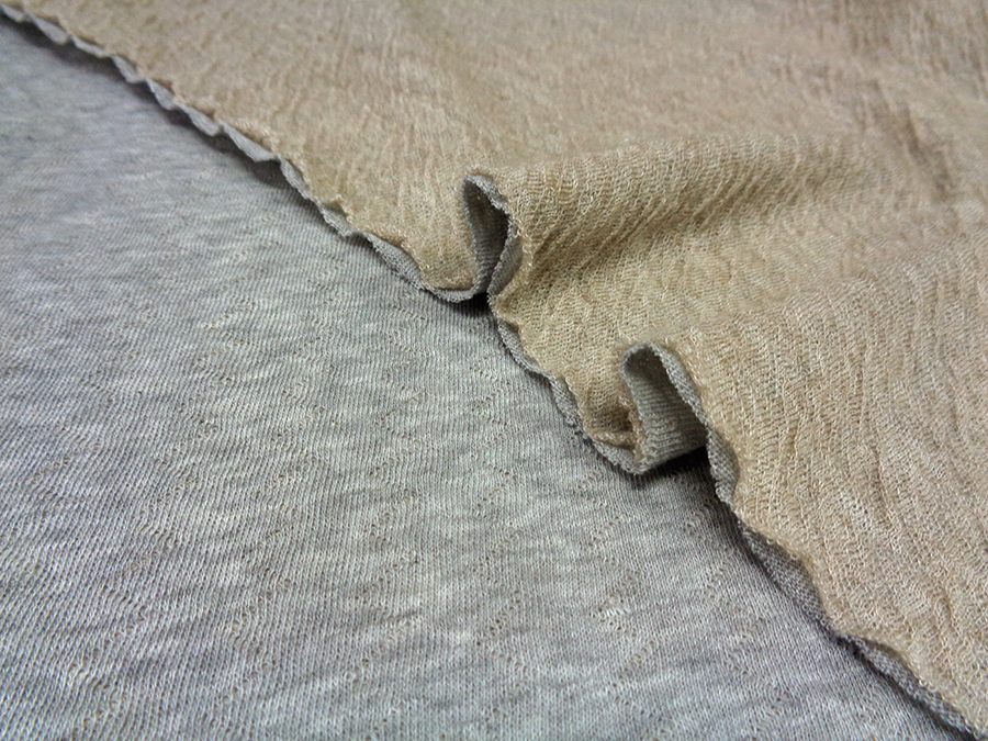 PREGIATO ED ESCLUSIVO JERSEY DOUBLEFACE. MORBIDISSIMO, FLUENTE, SETOSO, LEGGERO, CALDO E CONFORTEVOLE. SPECIALE LAVORAZIONE DOUBLEFACE OTTENUTA DOPPIANDO E CUCENDO INSIEME DUE TESSUTI IN JERSEY LEGGERO: LA PARTE NATURALE CALDA E SETOSA E’ IN CASHMERE E SETA, LA PARTE IN COLORE GRIGIO MELANGE SETOSA E RASATA E’ IN SETA E COTONE FILO DI SCOZIA. LAVORAZIONE LEGGERMENTE GOFFRATA DA AMBO LE PARTI. QUESTO TIPO DI LAVORAZIONE DA LA POSSIBILITA’ DI INDOSSARE IL TESSUTO DA AMBO I LATI.