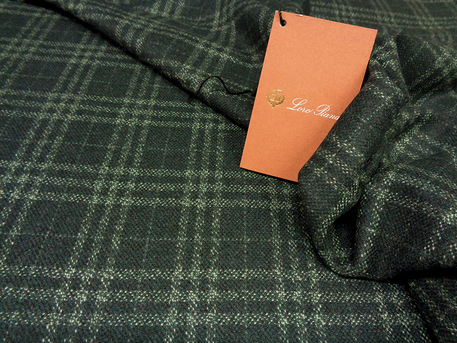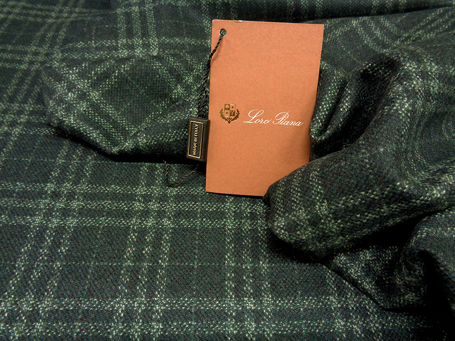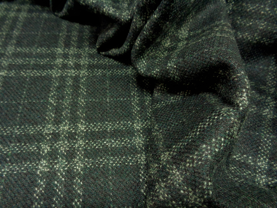 LORO PIANA STOCK (NO FIRMATO, NO CORREDATA DA ETICHETTE) PREGIATISSIMO TESSUTO IN PURO CASHMERE , MORBIDISSIMO, LEGGERO, SOFFICE, SETOSO ED OPACO. FONDO VERDE BOTTIGLIA MELANGE CON PRINCIPE DI GALLES IN TONALITA’ DI VERDE LEGGERMENTE PIU’ CHIARO. INDICATO PER: GIACCHE, ABITI, SOPRABITI, VESTAGLIE, ECC..