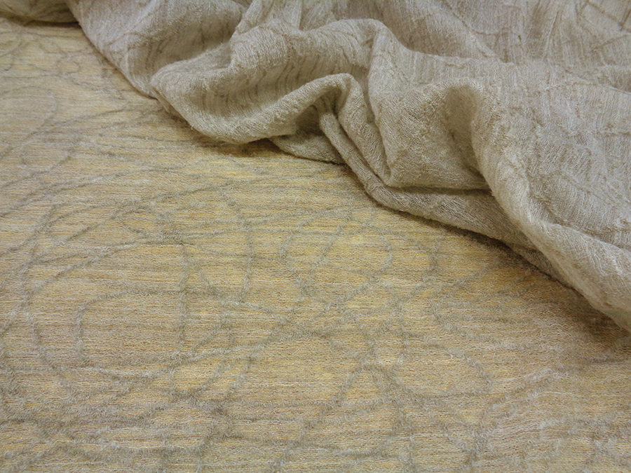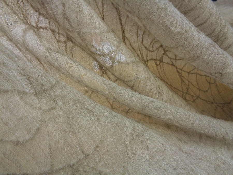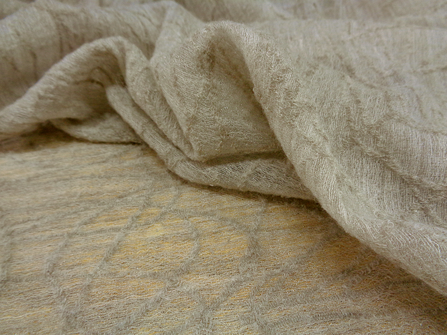 ESCLUSIVO E PREGIATO TESSUTO IN GARZA DI LANA MERINO. LEGGERISSIMA, VELATA, SOFFICE E RADA. REALIZZATA A TELAIO CON LAVORAZIONE JAQUARD IN TRAMA EFFETTO NERVATURE IN RILIEVO TINTA SU TINTA. LA LEGGEREZZA E TRASPARENZA LA RENDONO IDEALE PER: CASACCHE, CAMICIE, STOLE, SCIARPONE, GONNE MORBIDE, SPOLVERINI, ECC..