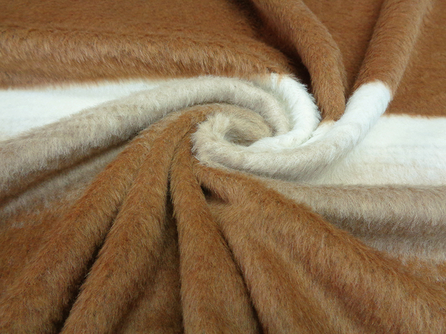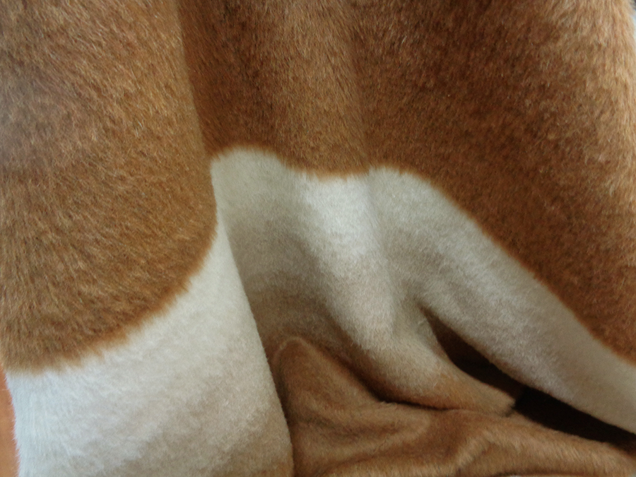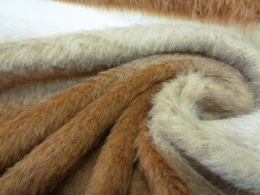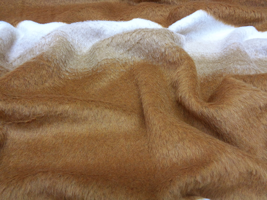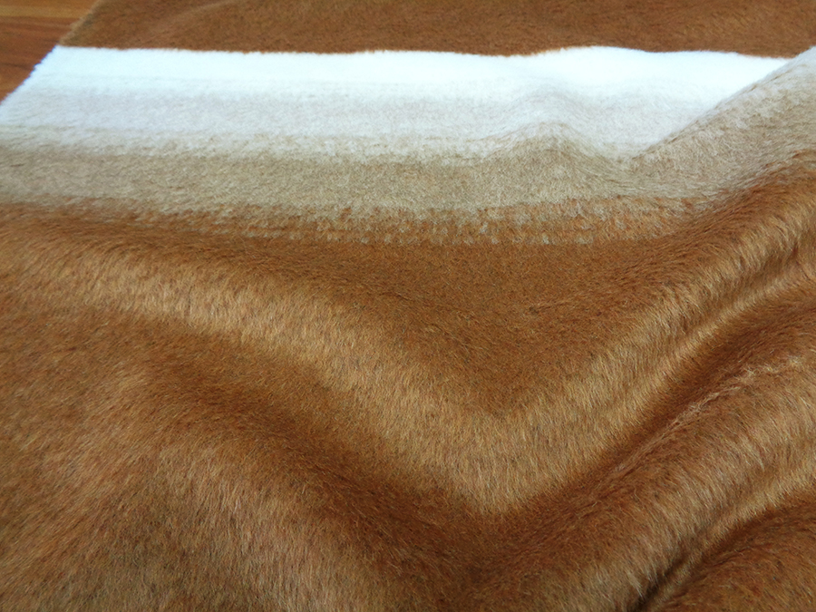PREGIATISSIMO ED ESCLUSIVO TESSUTO IN ALPACA LANA E CASHMERE. ESTREMAMENTE MORBIDO, SETOSO, VELLUTATO E CALDISSIMO. PARTICOLARE LAVORAZIONE A FASCE SFUMATE DI CM 50 CADUNA (DA CHIARO A SCURO) DAI TONI DEL PANNA , BEIGE, CAMMELLO AL BISCOTTO . TESSUTO UNISEX. INDICATO PER: CAPPOTTI, GIACCONI, MANTELLE, COPERTE, ECC..