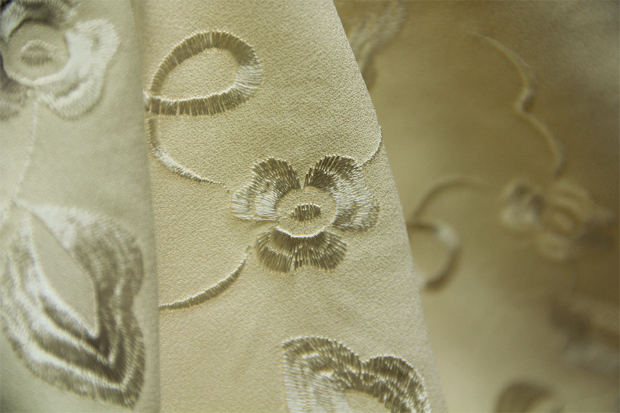 VALENTINO STOCK ( NO FIRMATO) RICAMATO CON FILO IN SETA TINTA SU TINTA. INDICATO PER: GIACCHE, ABITI, GONNE, CORPETTI, ECC