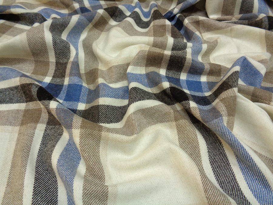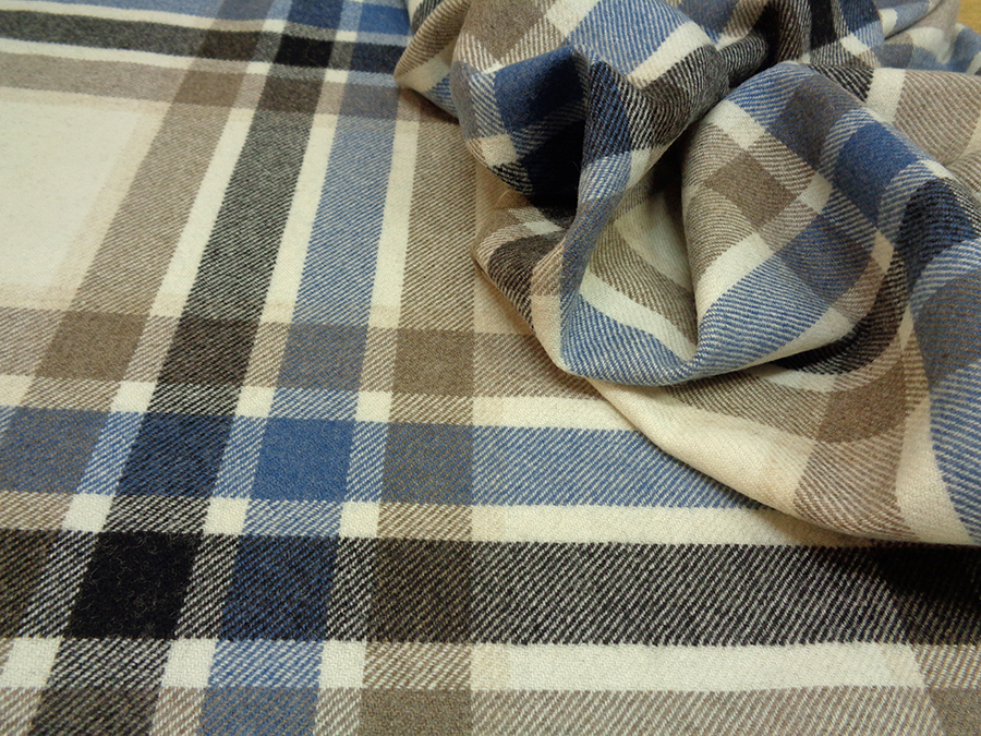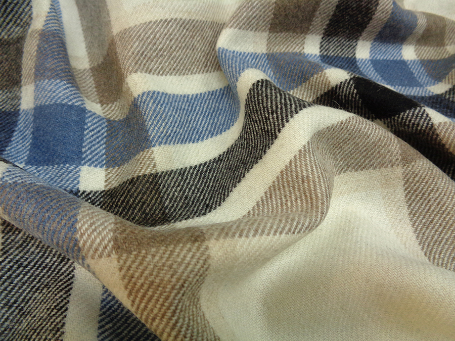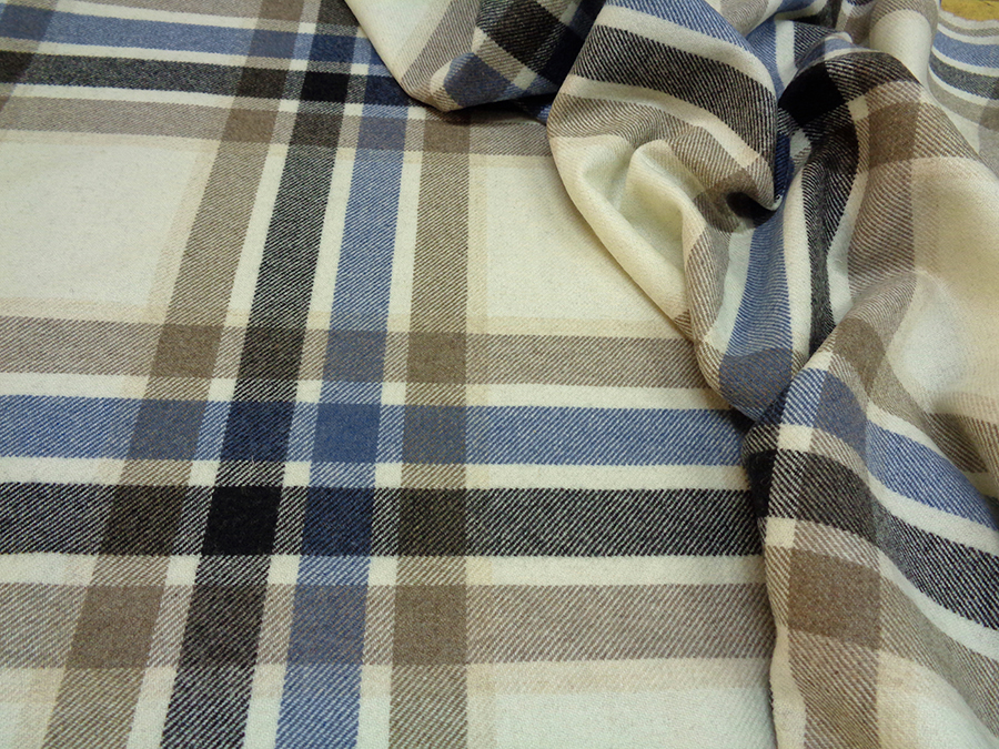 PREGIATO TESSUTO IN PURA LANA UNISEX. PESO MEDIO, CALDO E SOFFICE. FONDO PANNA MELANGE CON GRANDE SCOZZESE SUI TONI DELL’AZZURRO, TORTORA E NERO. LA TRAMA E LA CONSISTENZA LO RENDONO IDEALE PER: GIACCHE PESANTI, PANTALONI INFORMALI, GONNE, PLAID, MANTELLE, ECC..