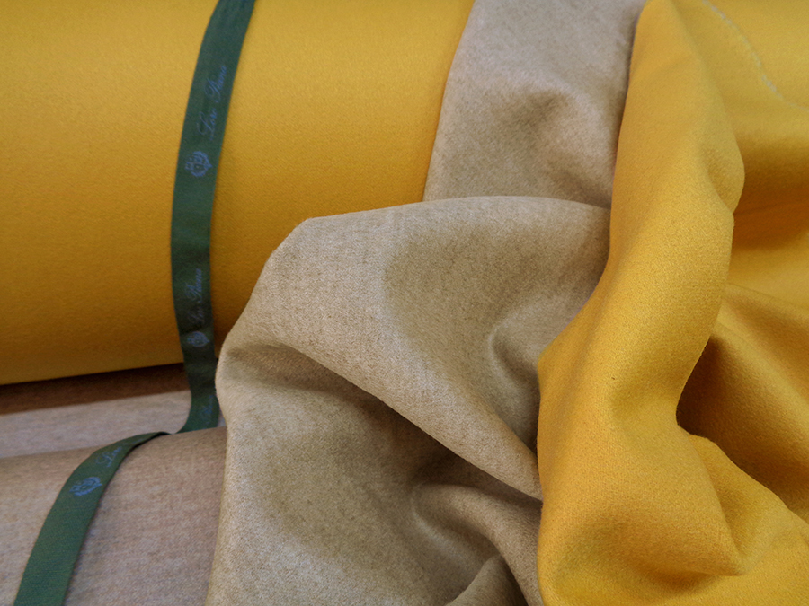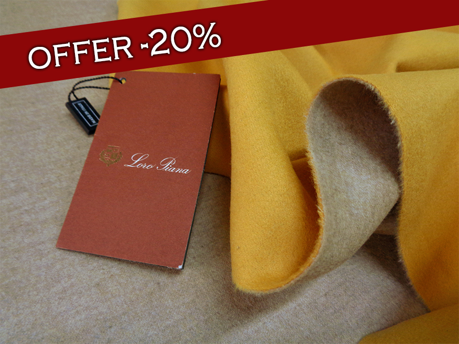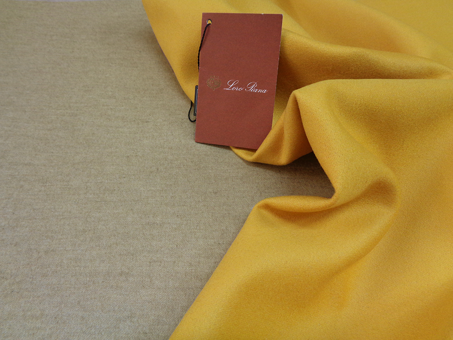 LORO PIANA STOCK (NO FIRMATO, NO CORREDATO DA ETICHETTE) PREGIATISSIMO TESSUTO IN PURO CASHMERE DOUBLEFACE APRIBILE, COMPATTO, MORBIDO, CALDO, SOFFICE, SETOSO E LEGGERMENTE LUMINOSO. COLORE: DA UN LATO BEIGE NATURALE MELANGE OPACO E DALL’ALTRO LATO GIALLO CON FINITURA LUMINOSA. POSSIBILITA’ DI UTILIZZO DA AMBO I LATI. L’ALTISSIMA QUALITA’ DEL FILATO IN PURO CASHMERE DOUBLEFACE CONFERISCE UNA SENSAZIONE DI MORBIDEZZA E CALORE IMPAREGGIABILE. TESSUTO UNISEX AD ESAURIMENTO SCORTE. INDICATO PER: CAPPOTTI, GIACCONI, REVERSIBILI CON PELLICCIA, MANTELLE, COPERTE, ECC..