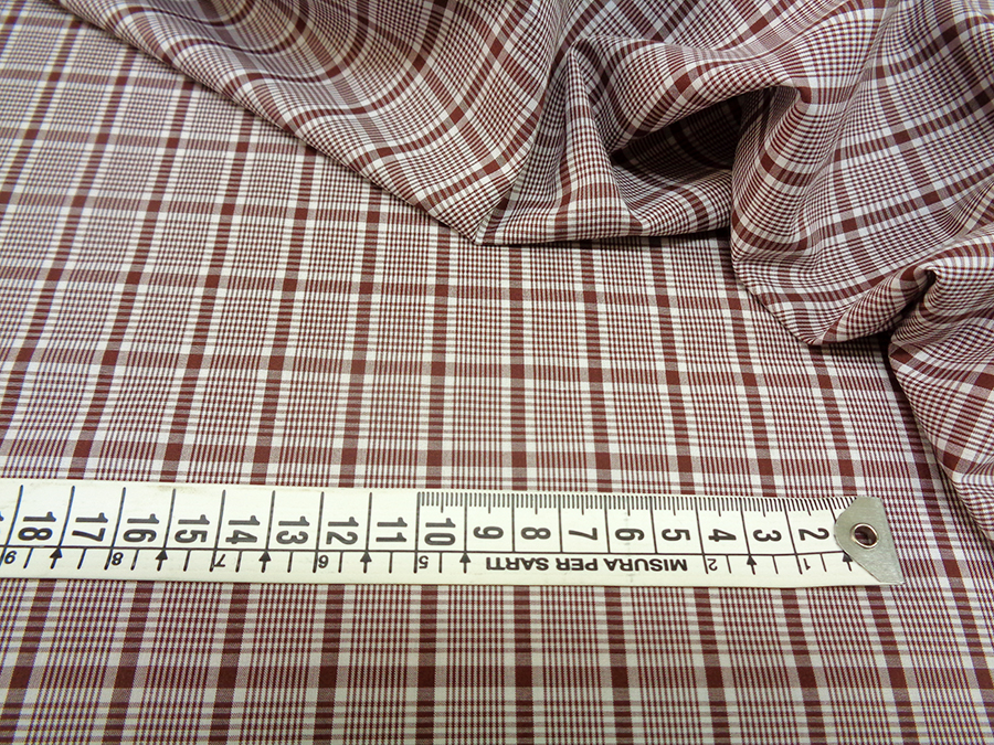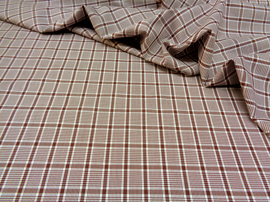 ERMENEGILDO ZEGNA STOCK (NO FIRMATO, NO CORREDATO DA ETICHETTE). MORBIDO E SETOSO POPELINE IN PURO COTONE CON PRINCIPE DI GALLES SUI TONI DEL CASTAGNA E BIANCO . TESSUTO UNISEX. INDICATO PER CAMICIA.