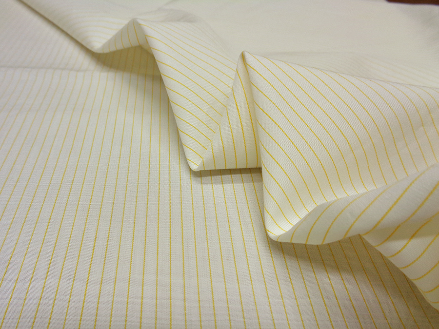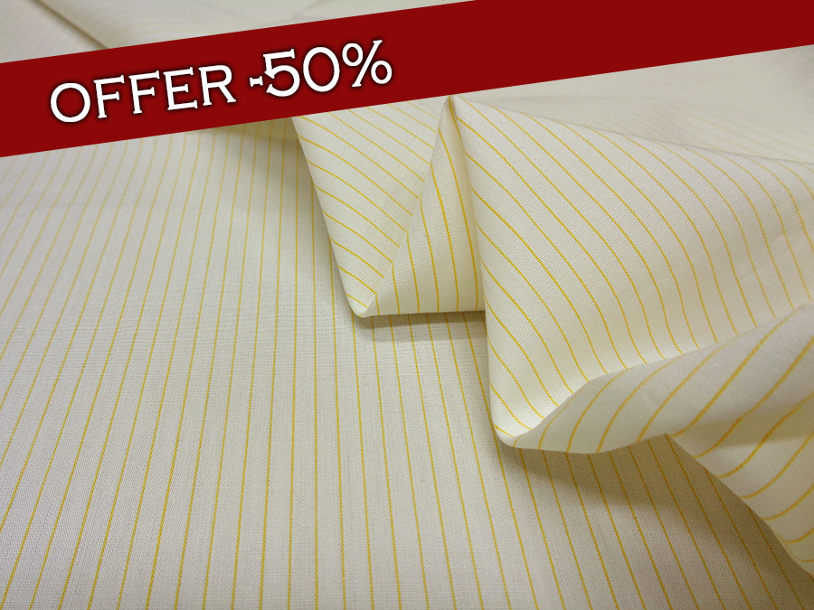ERMENEGILDO ZEGNA STOCK (NO FIRMATO, NO CORREDATO DA ETICHETTE). MORBIDO , LEGGERO E SETOSO POPELINE IN PURO COTONE FONDO BIANCO CON BACCHETTATO GIALLINO CHIARO.. TESSUTO UNISEX. INDICATO PER CAMICIA, ECC