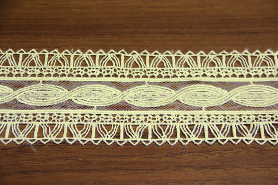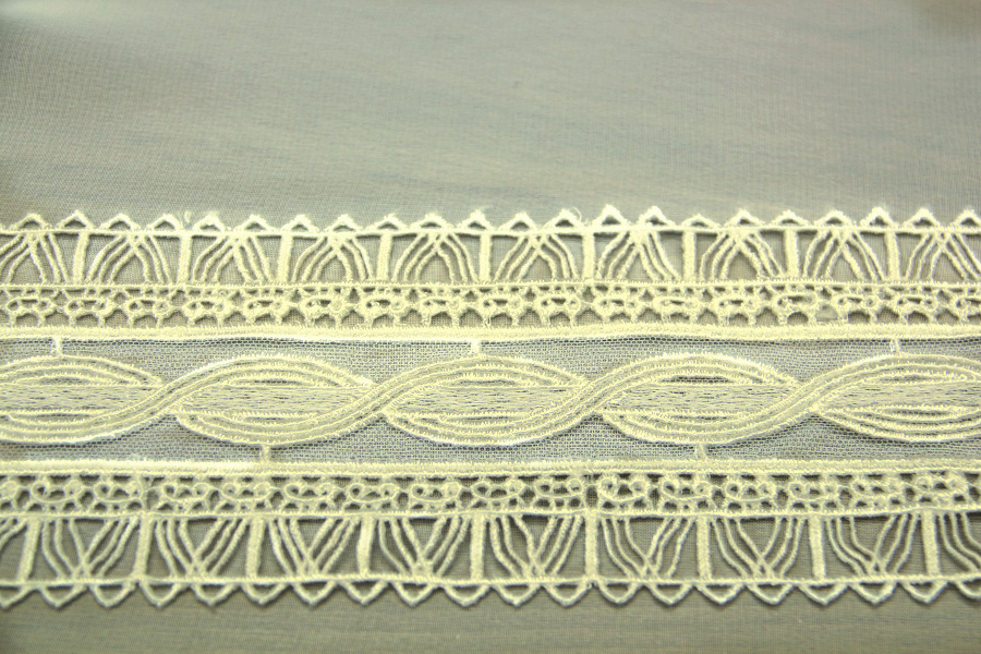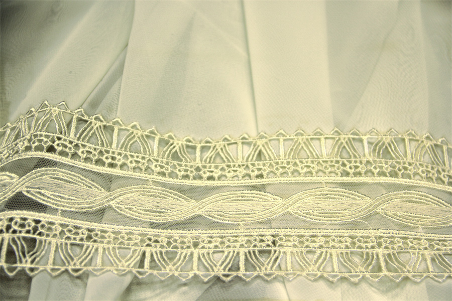 PREGIATO BORDO CON LAVORAZIONE SU TULLE E MACRAME.