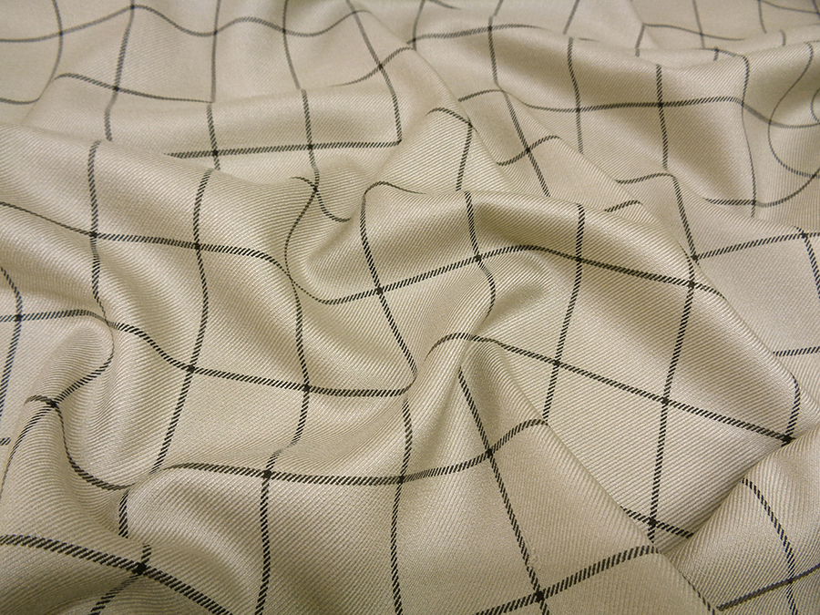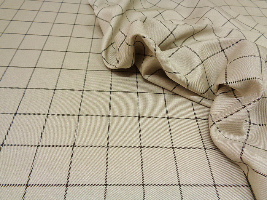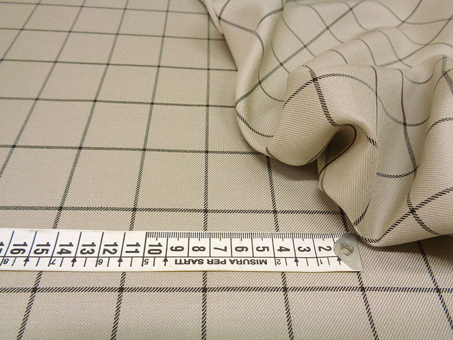 KITON STOCK (PRODUZIONE TALLIA DELFINO. NO FIRMATO, NO CORREDATO DA ETICHETTE) PREGIATISSIMO ED ESCLUSIVO TESSUTO IN CASHMERE E SETA PETTINATA . LEGGERO, SETOSO, LEGGERMENTE LUMINOSO E SCATTANTE. FONDO SABBIA CON FINESTRATO NERO. LA SPECIALE E PREZIOSA COMPOSIZIONE CON LAVORAZIONE PETTINATA E RASATA CONFERISCE AL TESSUTO LEGGEREZZA E SETOSITA’, RENDENDOLO ADATTO ALLE 4 STAGIONI. TESSUTO UNISEX INDICATO PER: ABITI, GIACCHE, PANTALONI, TAILLEUR, ECC..