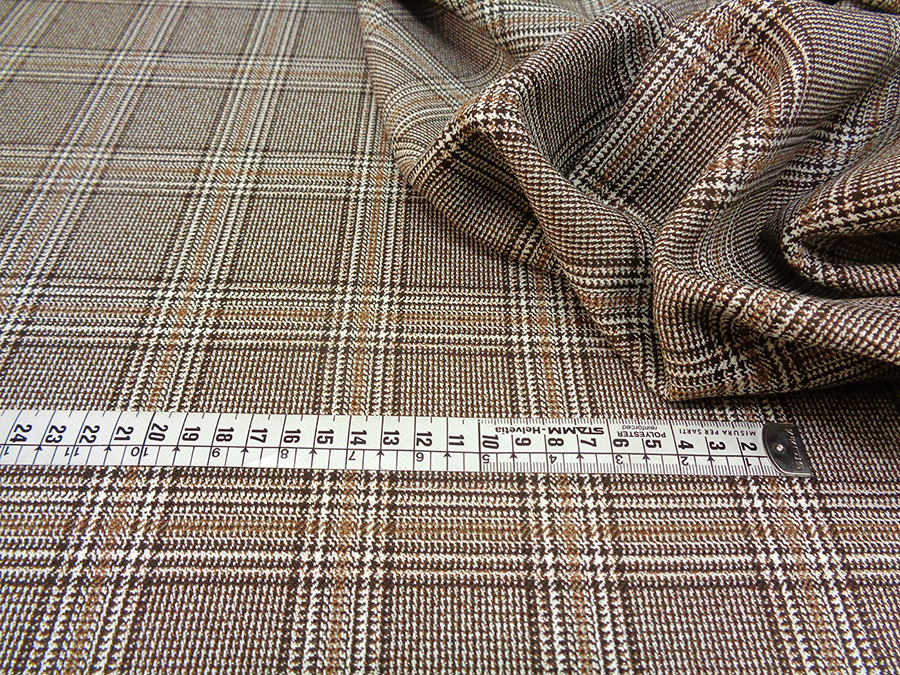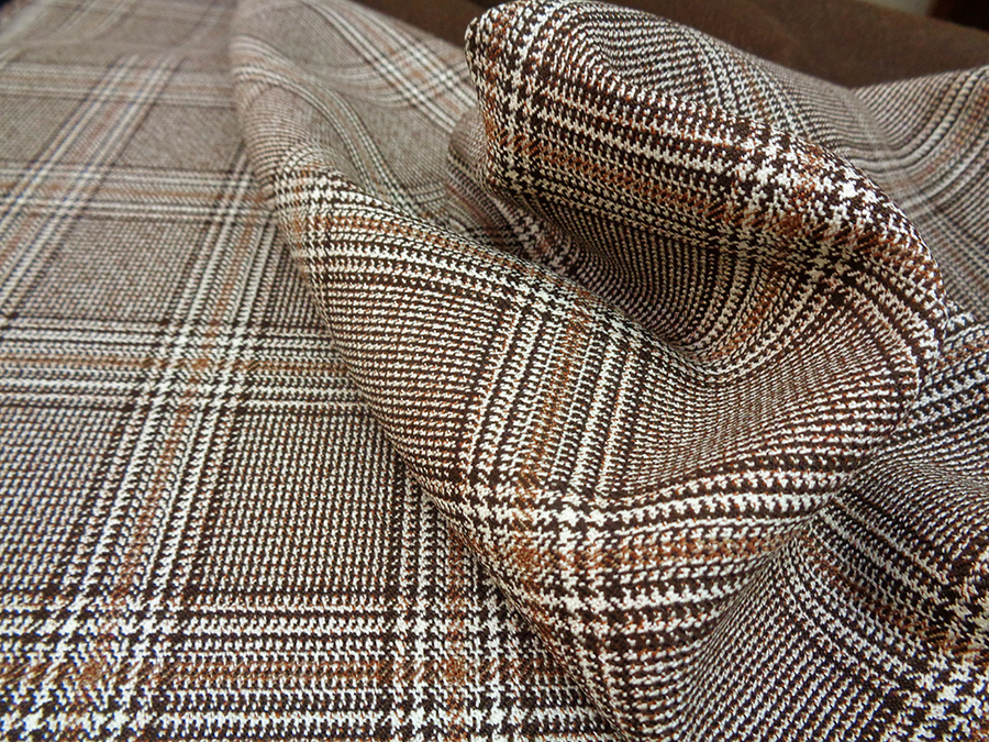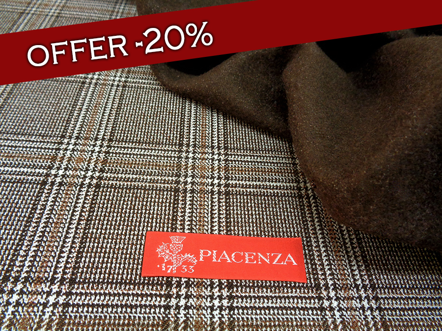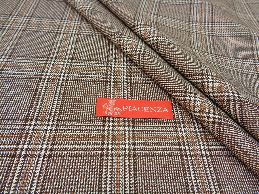 LANIFICIO PIACENZA STOCK (NO FIRMATO, NO CORREDATO DA ETICHETTE) PREGIATO TESSUTO IN PURA LANA BIELLESE DOUBLEFACE. COMPATTO, CORPOSO E RASATO. LAVORAZIONE DOUBLEFACE (NON APRIBILE) DA UN LATO PRINCIPE DI GALLES SUI TONI DEL MARRONE E NOCCIOLA, DALL’ALTRO LATO TINTA UNICA COLOR MARRONE CASTAGNA MELANGE  POSSIBILITA’ DI UTILIZZO DA AMBO I LATI O PER CAPI SFODERATI. TESSUTO UNISEX INDICATO PER: CAPPOTTI RASATI, GIACCONI, GIACCHE PESANTI, PARKA, GIUBBOTTI, PANTALONI PESANTI, ECC..