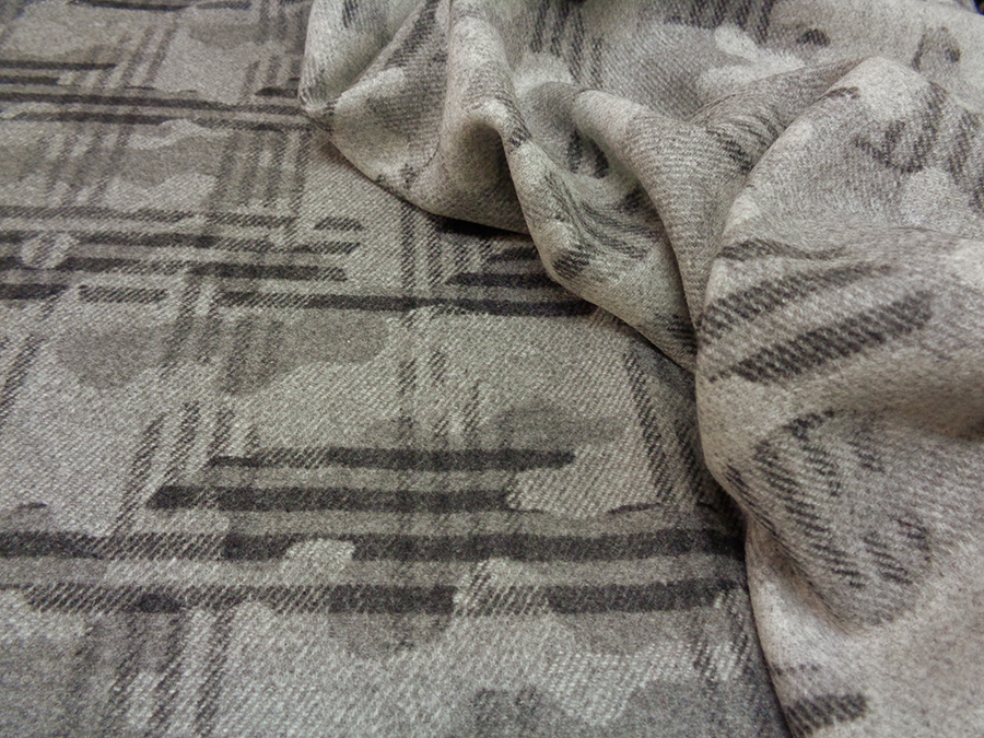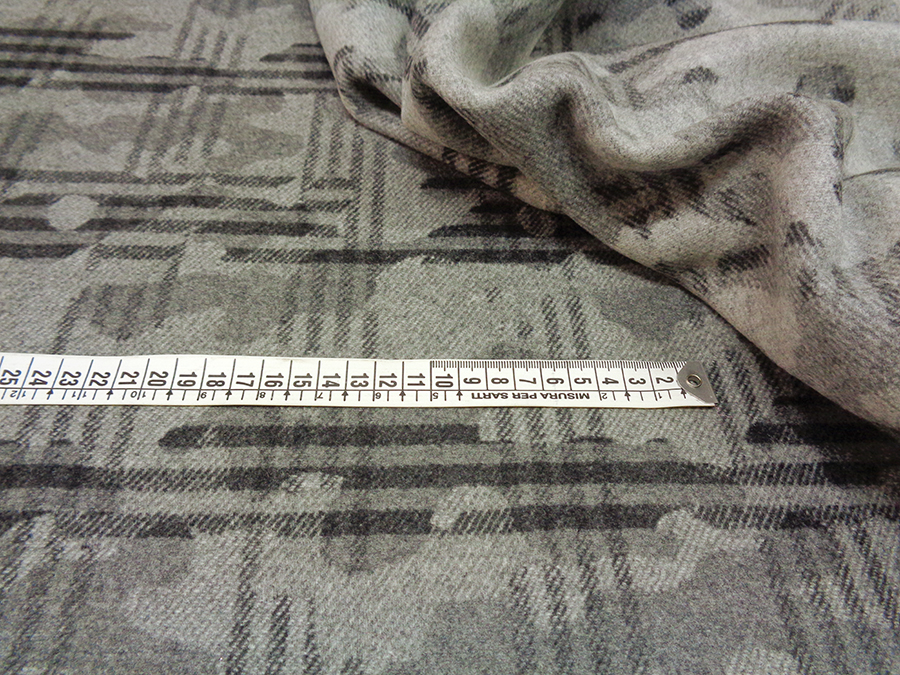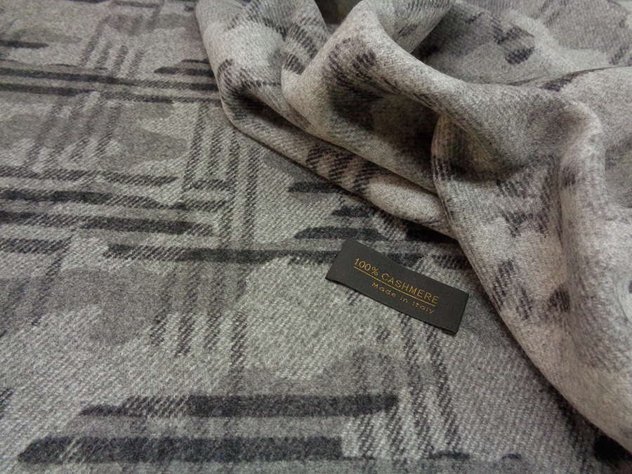 PREGIATO TESSUTO IN PURO CASHMERE PRODUZIONE BIELLESE, CORPOSO, COMPATTO , MORBIDO, SETOSO, CALDO ED OPACO. FONDO GRIGIO MEDIO CON DISEGNI ASTRATTI SUI TONI DEL GRIGIO PIU’ SCURO. TESSUTO UNISEX INDICATO PER: GIACCONE, CAPPOTTO CORTO, MANTELLA, GIACCA PESANTE, COPERTA, ECC..