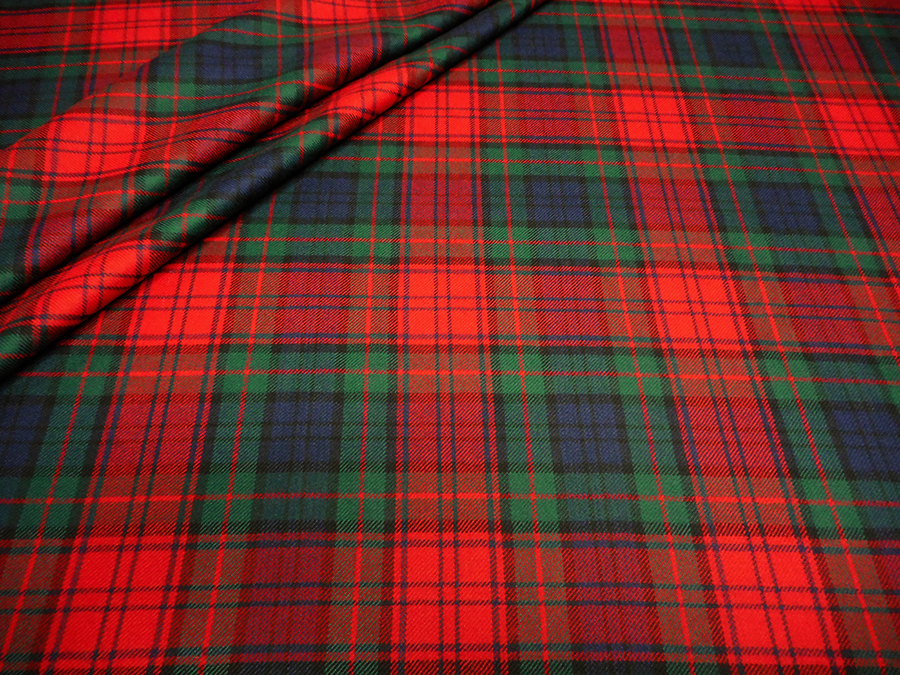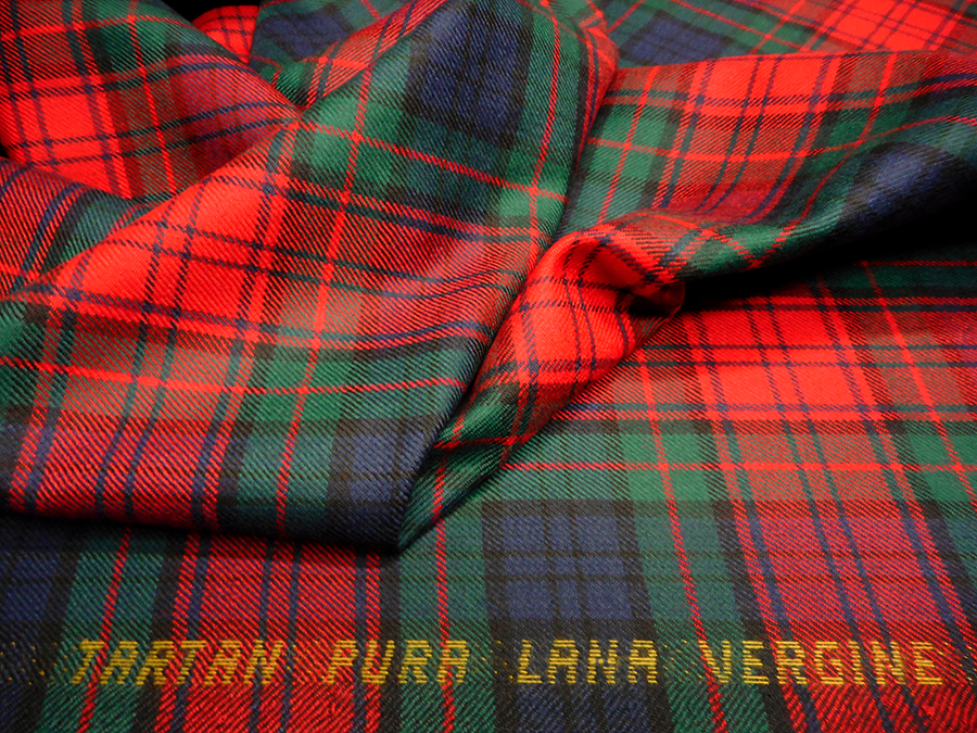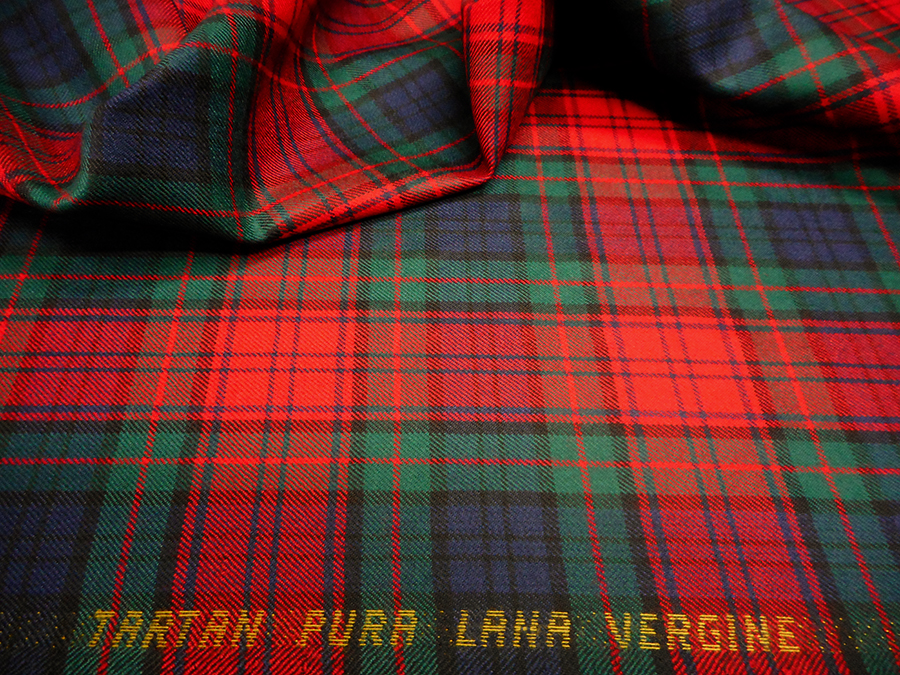 CLASSICO E PREGIATO TARTAN PURA LANA. SCOZZESE ROSSO, BLU E VERDE CON RIGA ROSSA E BLU. TESSUTO UNISEX INDICATO PER: GIACCHE, GONNE, PANTALONI, ECC..